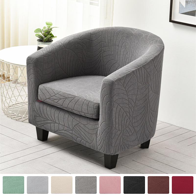 Leaves Jacquard Club Sofa Cover Solid Color Arc-shaped Single Chair Covers Removable Anti-dirty Sofa Protector Armchair Case