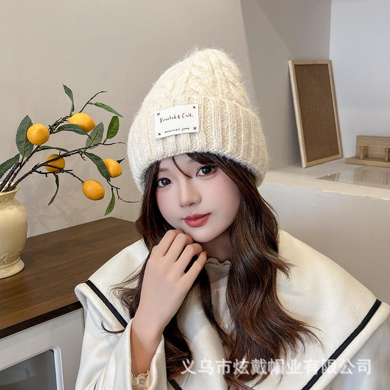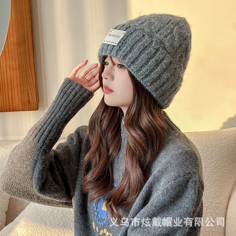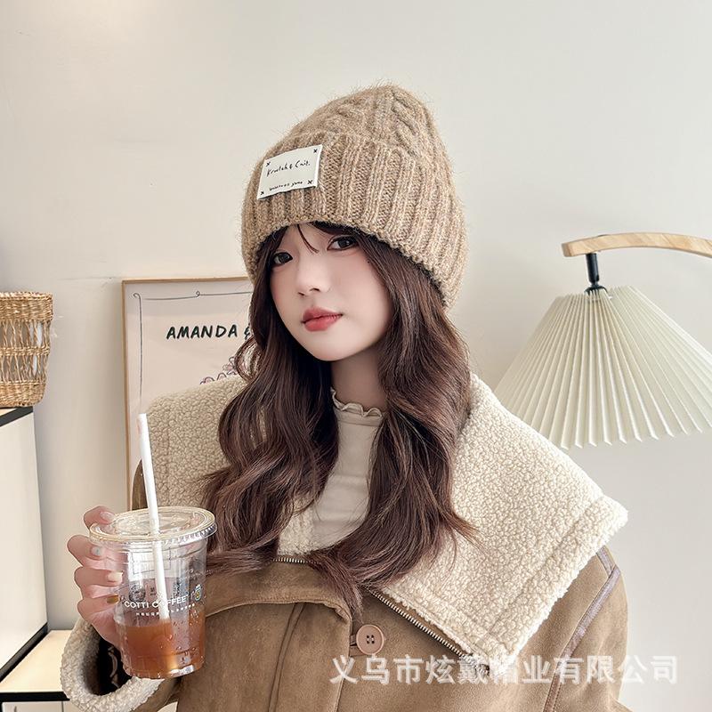 2024 осенние и зимние шапки женские плюшевые новые вязаные шапки универсальные теплые защитные наушники утолщенные модные шерстяные шапки