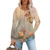 Женская модная повседневная плиссированная футболка с круглым вырезом и принтом, с длинным рукавом