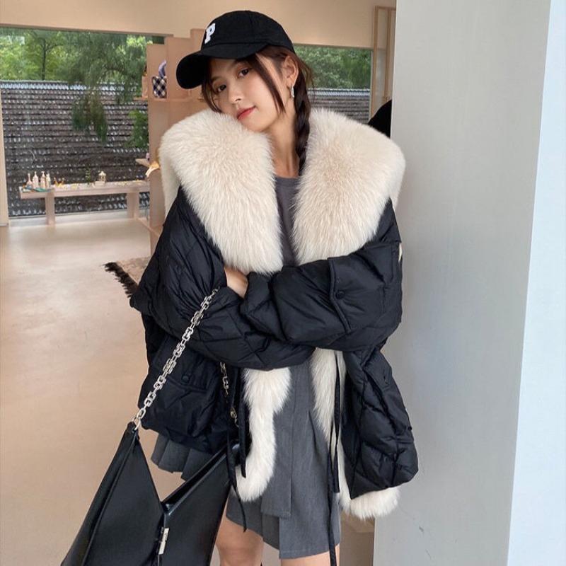 Зимняя женская куртка с большим воротником из искусственного меха лисы, пушистая свободная стеганая куртка, парки, ветрозащитное пальто, верхняя одежда для снега, теплая