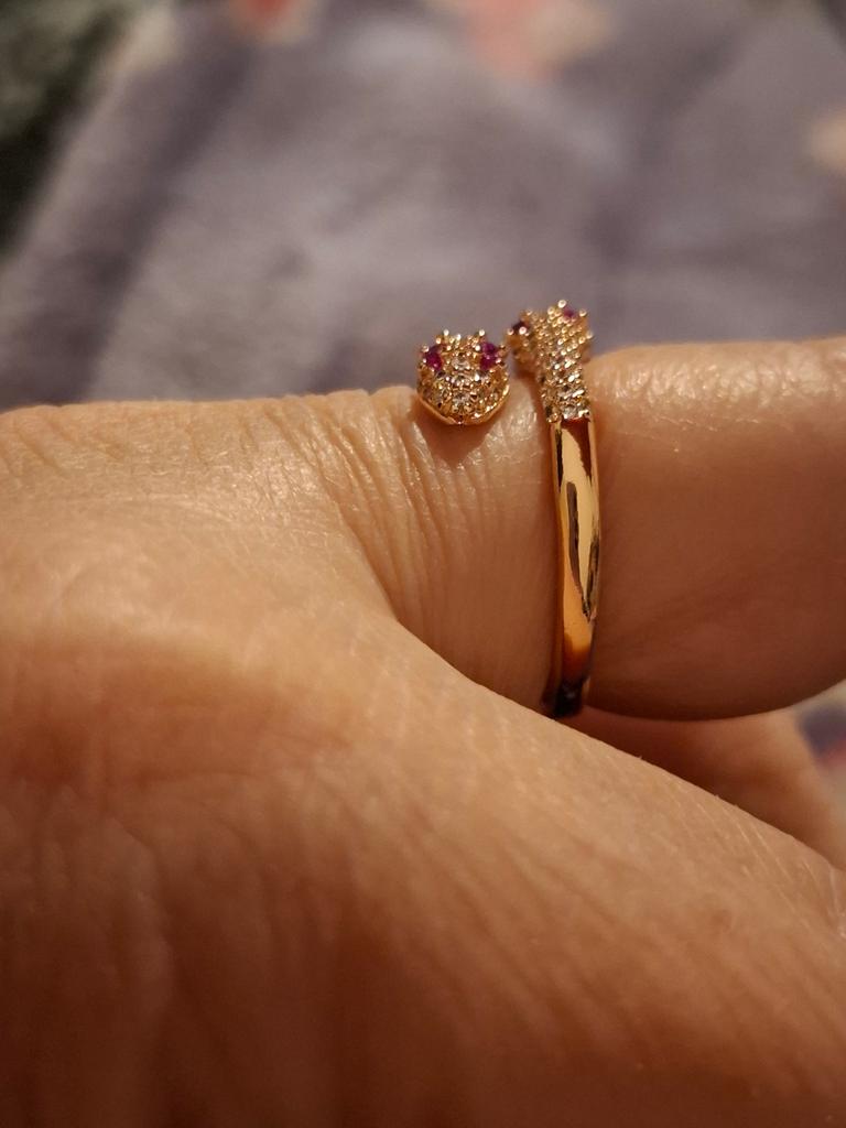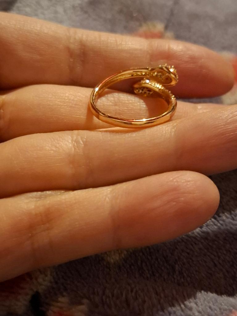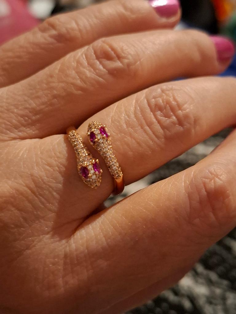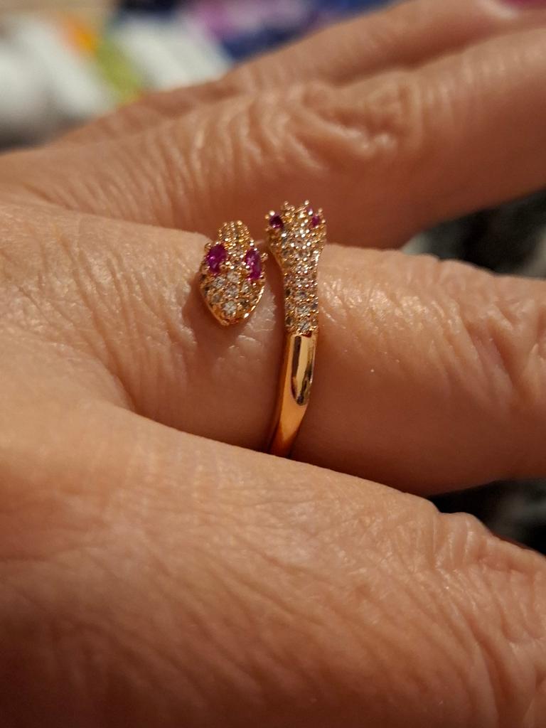 Чудесноп колечко! Нежное , с красивыми розовыми камешками. У меня 8 размер, можно сказать, что почти нормально. Одевается плотнова-то, но если у кого 7 размер, наверное, будет идеально. Но кольцо можно слегка разжать и будет нормально. Пишут, что медь, поэтому посмотрим, сколько выдержит не темнеть. Спасибо продавцу и магазину! Рекомендую!