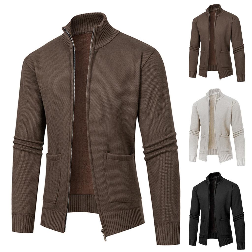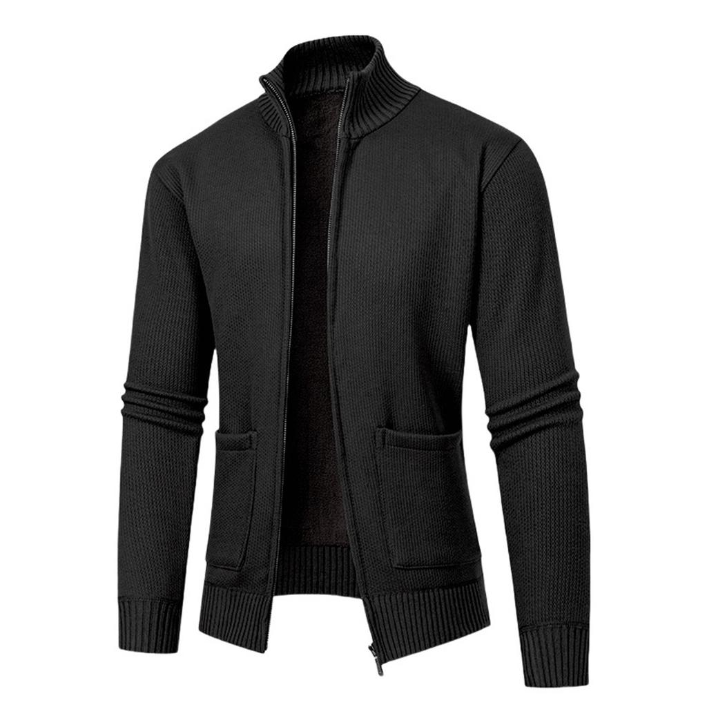 Мужской кашемировый вязаный кардиган на осень и зиму для среднего возраста, повседневный теплый однотонный свитер с воротником-стойкой, пальто большого размера
