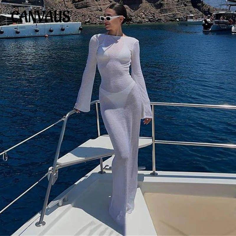 Женское пляжное платье Cover Ups2 с круглым вырезом, пляжная туника-бикини с защитой от солнца, длинные рукава, открытая спина, платья — купить товар онлайн с бесплатной доставкой по всему миру!
