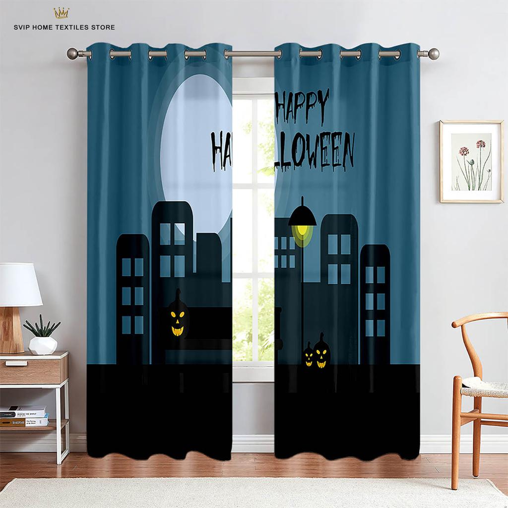 Шторы с принтом на Хэллоуин для детей, Темный замок, Череп ведьмы, Декоративные шторы для детской вечеринки, Подходит для спальни