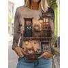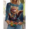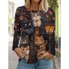 Женская толстовка с круглым вырезом, с длинным рукавом, модная, повседневная, с милым рисунком котенка и животных, с принтом топов