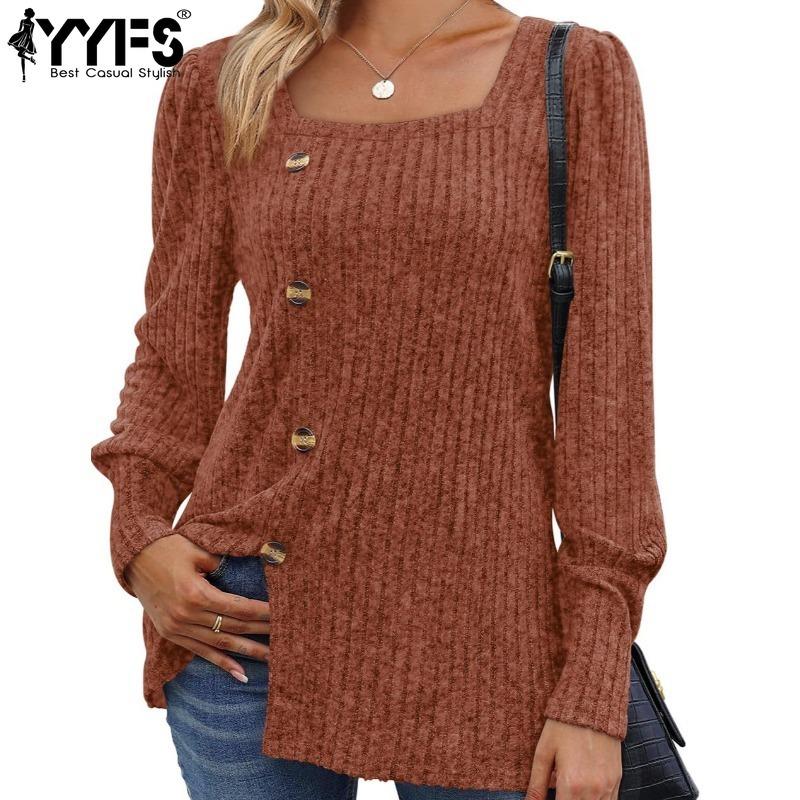 YYFS Женская мода повседневная весна осень однотонные принты длинные рукава квадратный воротник блузки и рубашки — купить товар онлайн с бесплатной доставкой по всему миру!