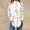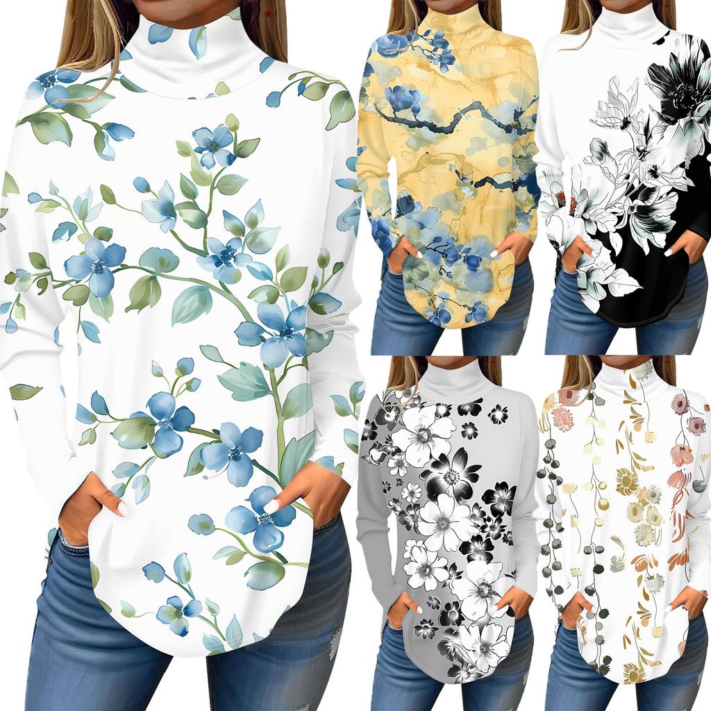 Женская модная повседневная футболка с длинным рукавом с высоким воротом и принтом, пуловер, топ