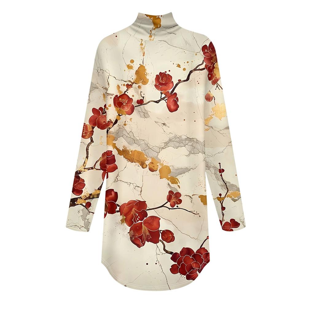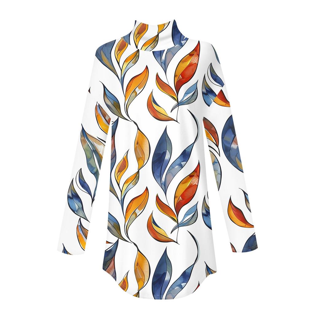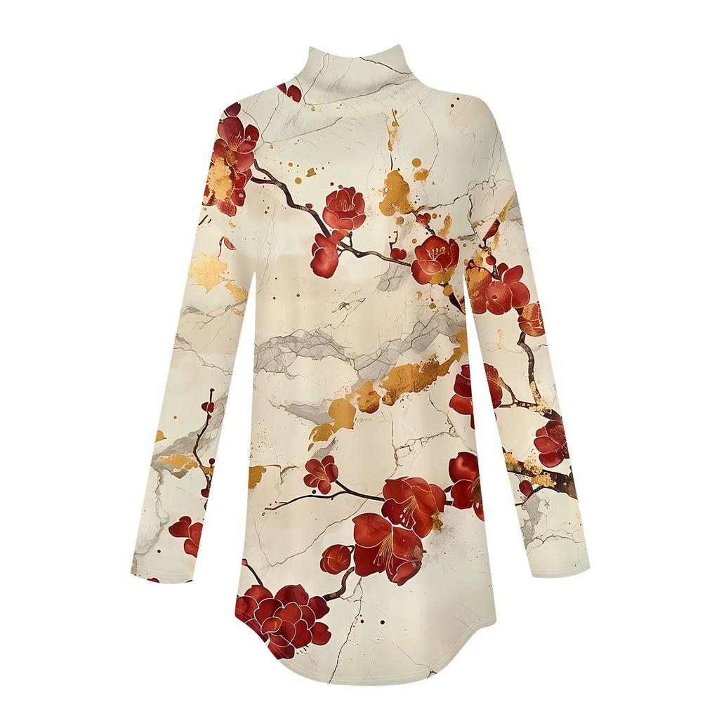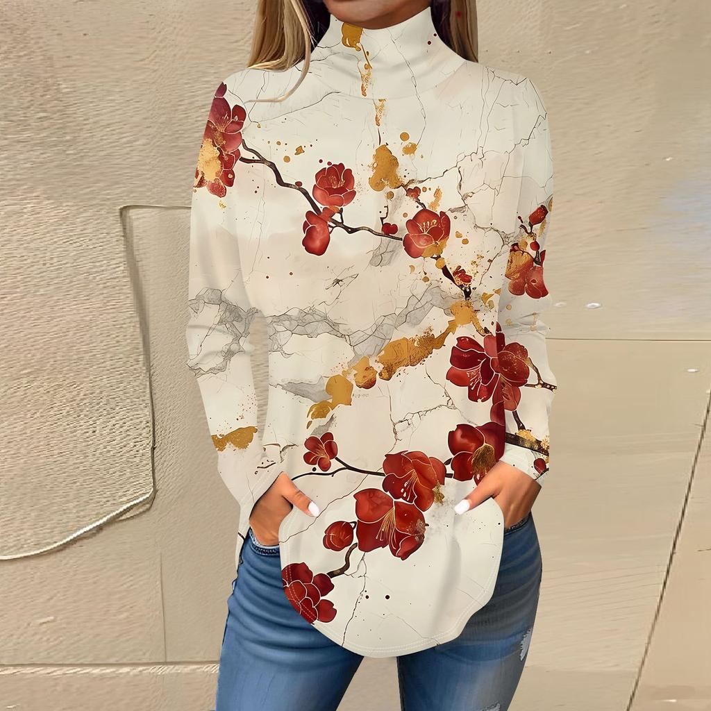 Женская модная повседневная футболка с длинным рукавом с высоким воротом и принтом, пуловер, топ