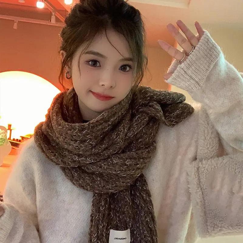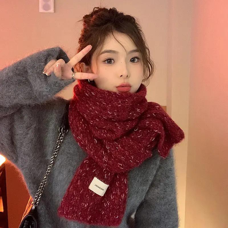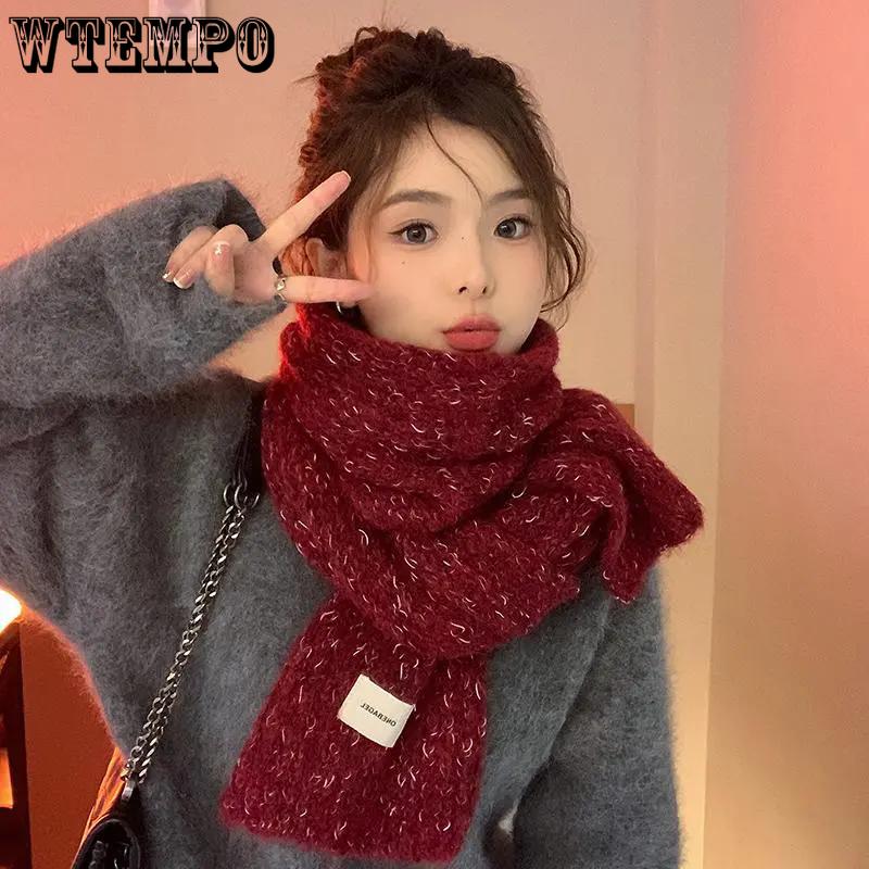 WTEMPO Ветрозащитный однотонный мягкий вязаный шарф женский осенне-зимний утолщенный теплый рождественский новогодний шерстяной шарф