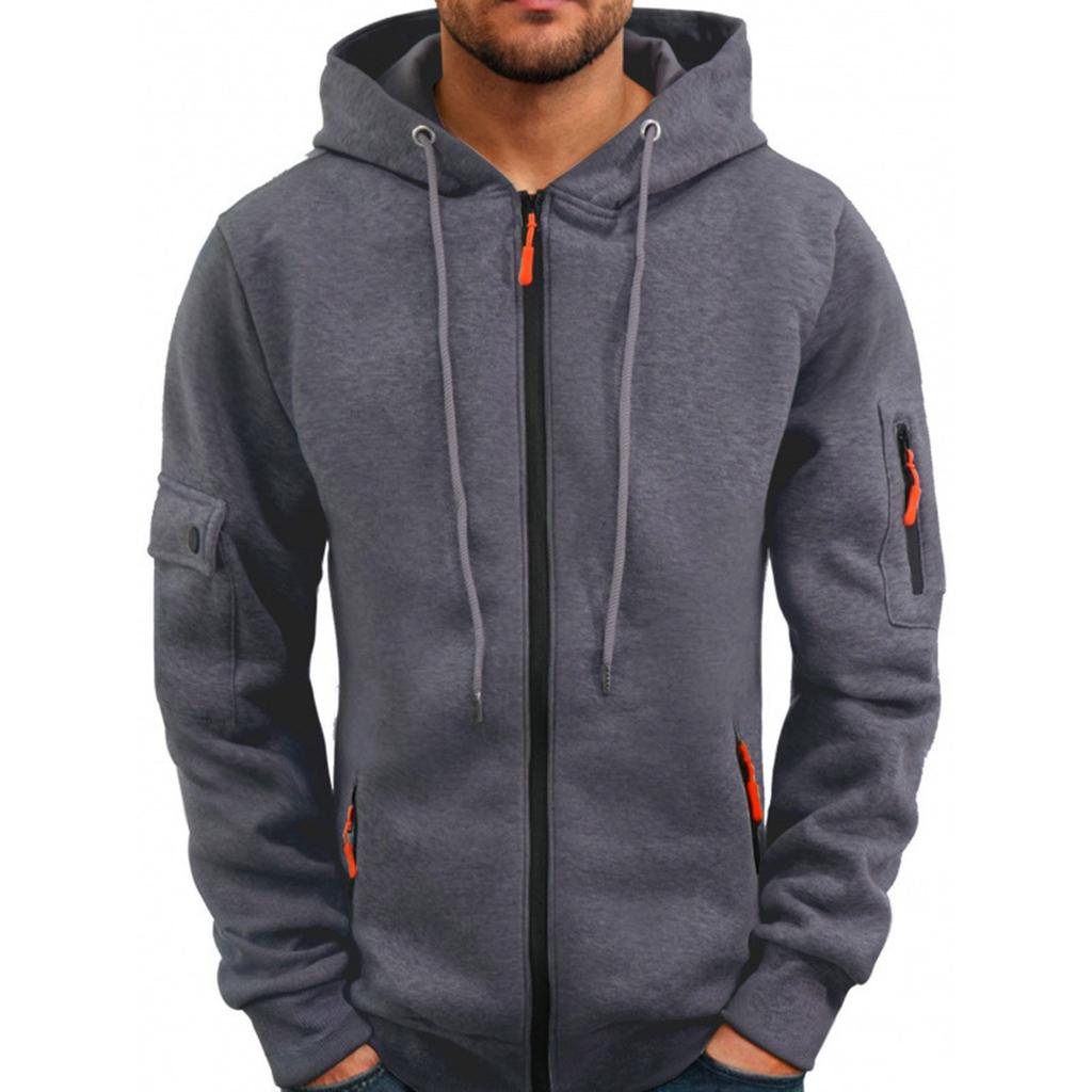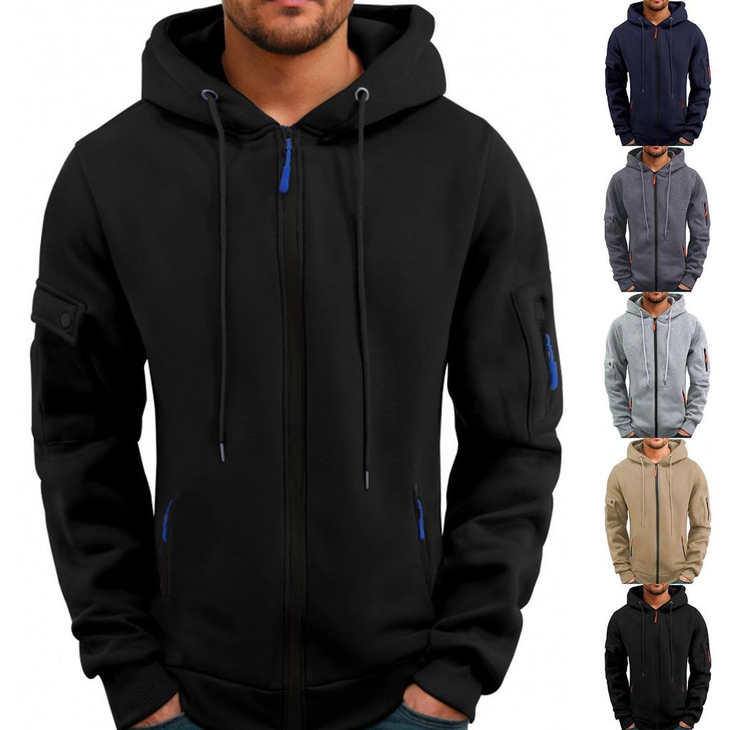 Мужская толстовка с капюшоном с принтом, кардиган на молнии с карманом на рукаве, мужская спортивная повседневная толстовка большого размера
