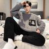 Мужская пижама из кораллового флиса, осень-зима, плюс утолщенный бархат, мужской зимний теплый фланелевый домашний служебный костюм