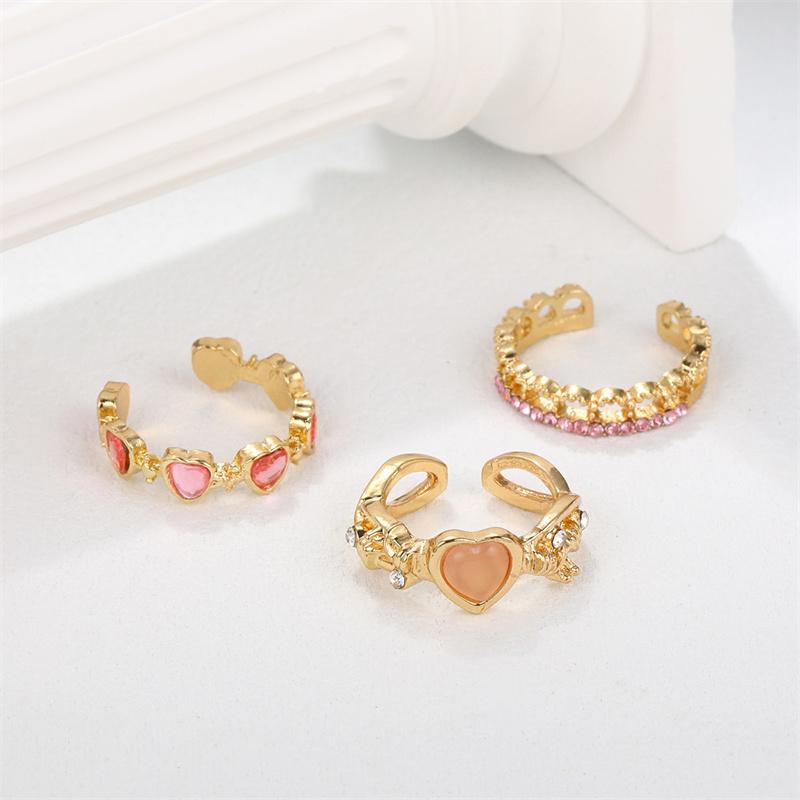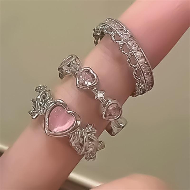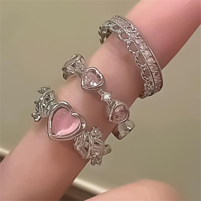 Y2K розовые хрустальные кольца для женщин и девочек, кольцо с бантом в виде сердца, кольцо с бабочкой, 3 шт./компл., романтические модные украшения для вечеринок, подарки