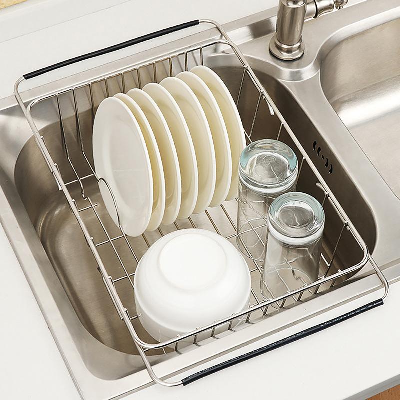 Регулируемая сушилка для посуды над раковиной, нержавеющая сталь, кухонная стойка для сушки посуды, стеклянная тарелка