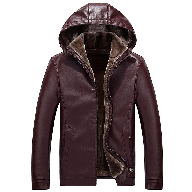 Зимняя мужская куртка из искусственной кожи с капюшоном и утолщенным бархатом, мужская куртка