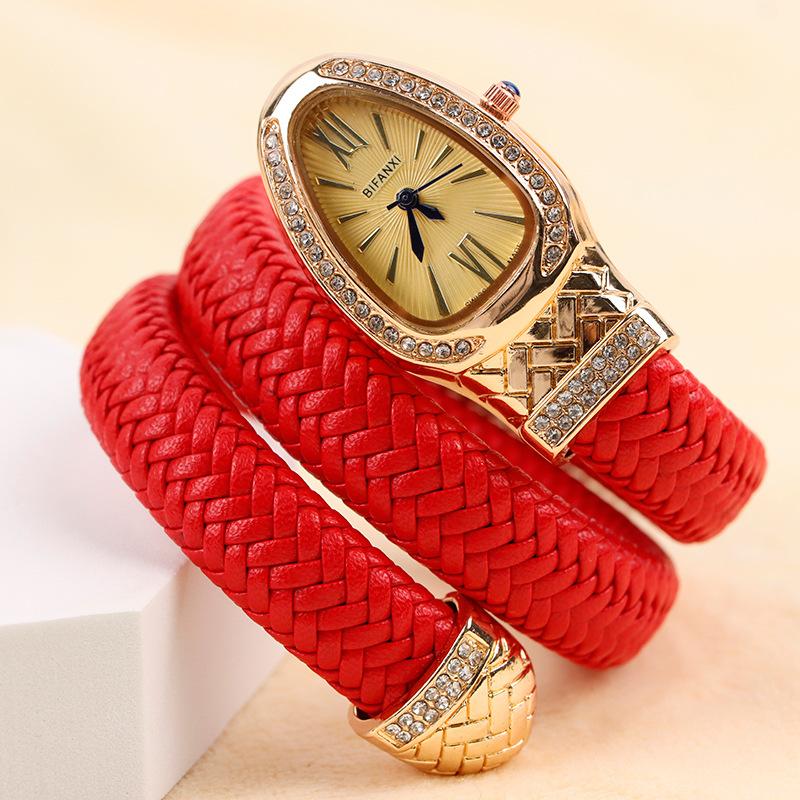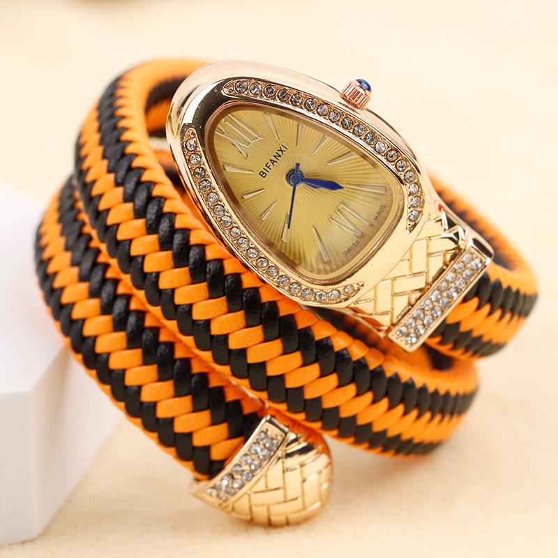 Часы Snake Watch Creative Quartz Watch Women Rhinestone Leather Bracelet Wristwatch