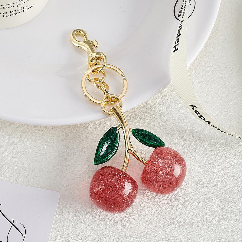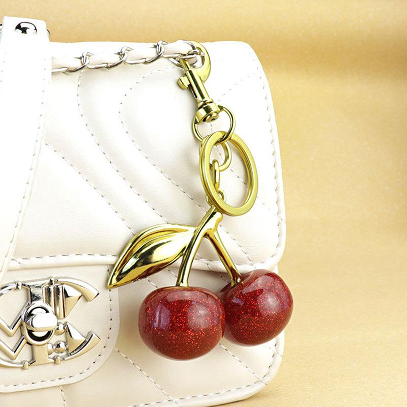 Сверкающая золотая подвеска в виде вишни для сумки, блестящая смоляная подвеска в виде вишни для кошелька, брелок, праздничный рождественский аксессуар