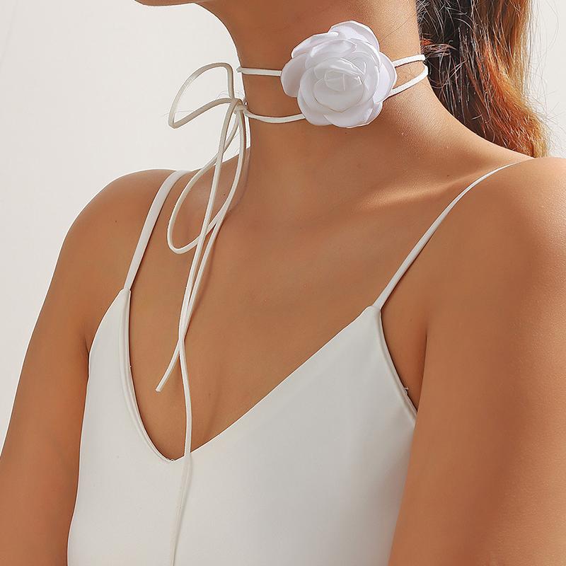 Ожерелье-чокер с бархатным цветком и большим цветочным воротником-колье с цветком камелии