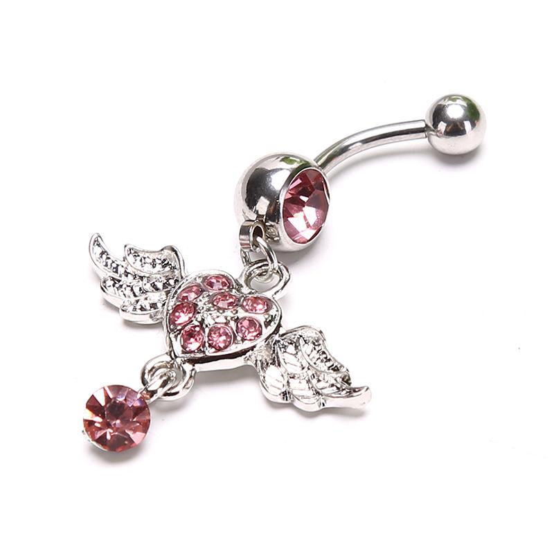 Женщины Пирсинг Сердце Крыло Живота Пупок Кольцо Мотаться Украшения Для Тела