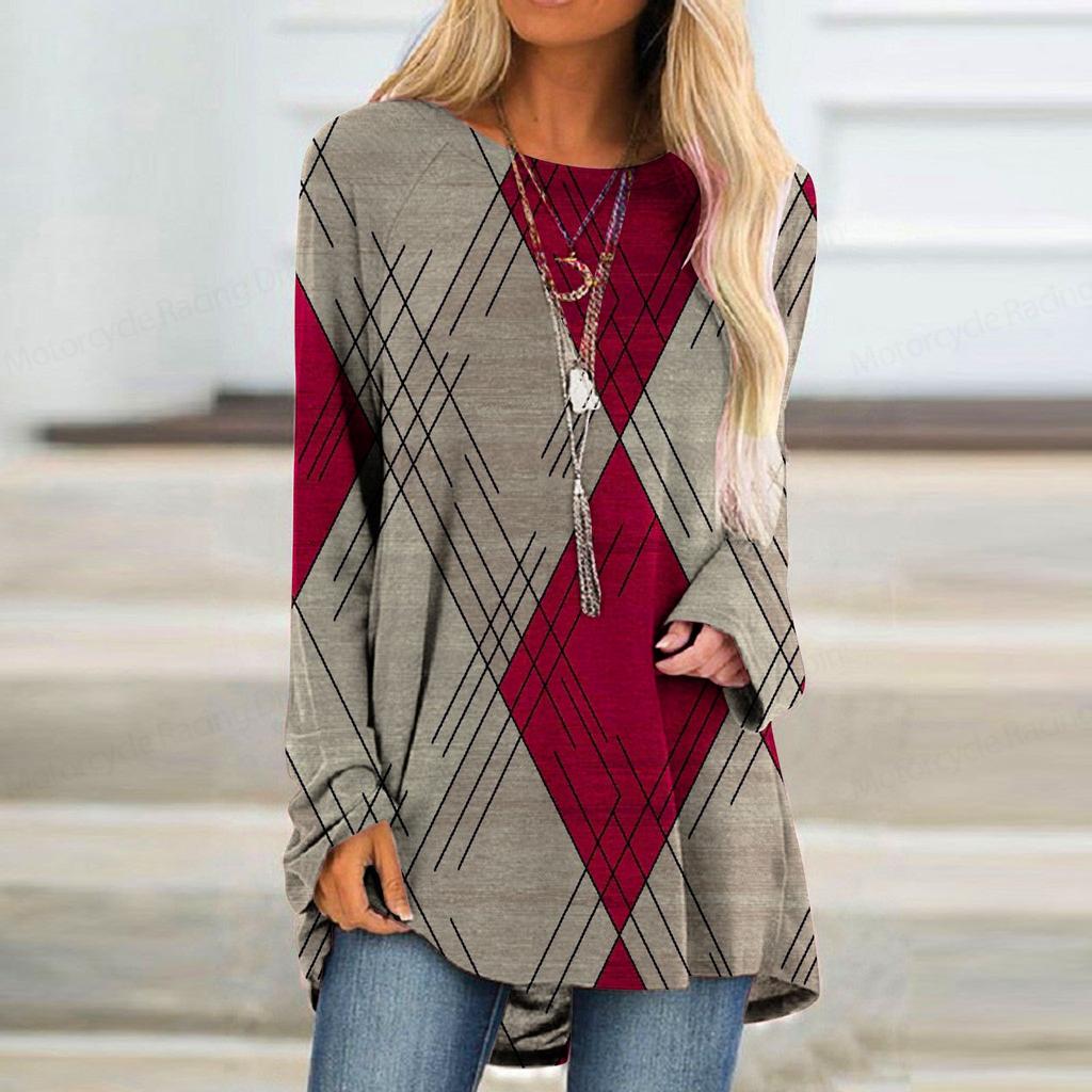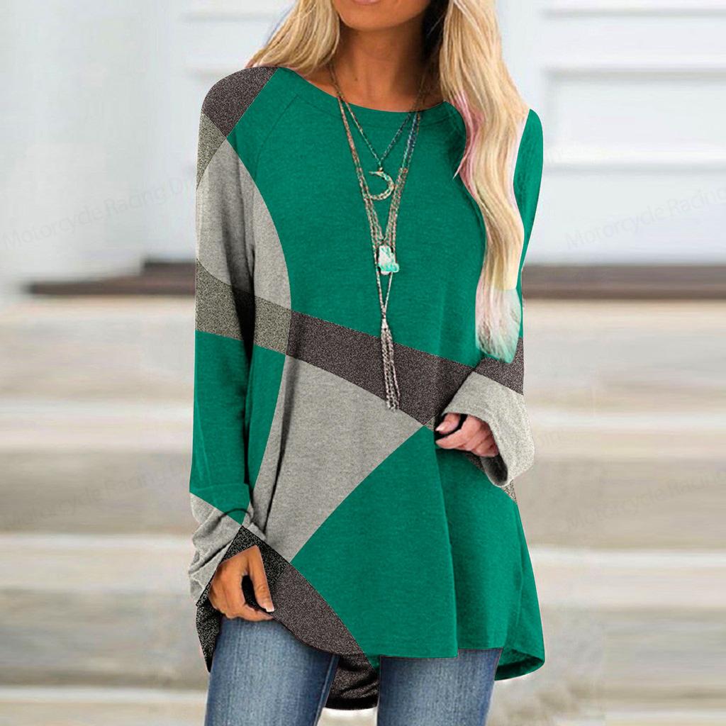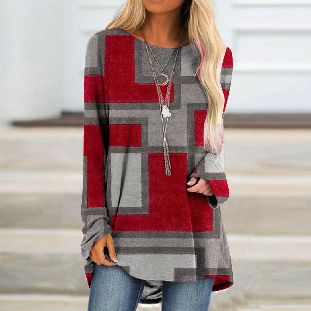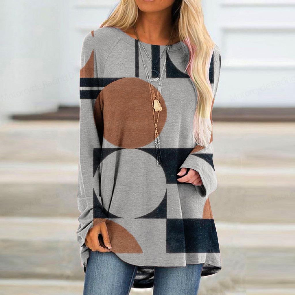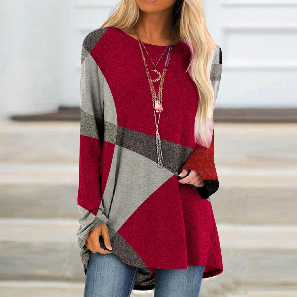 Футболка с длинным рукавом с градиентным 3D-принтом и принтом в полоску, женская модная футболка с круглым вырезом, длинная туника, женская футболка, женская одежда