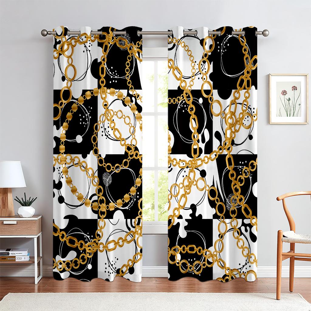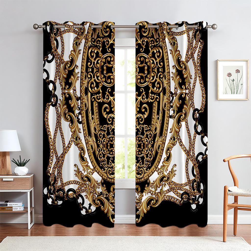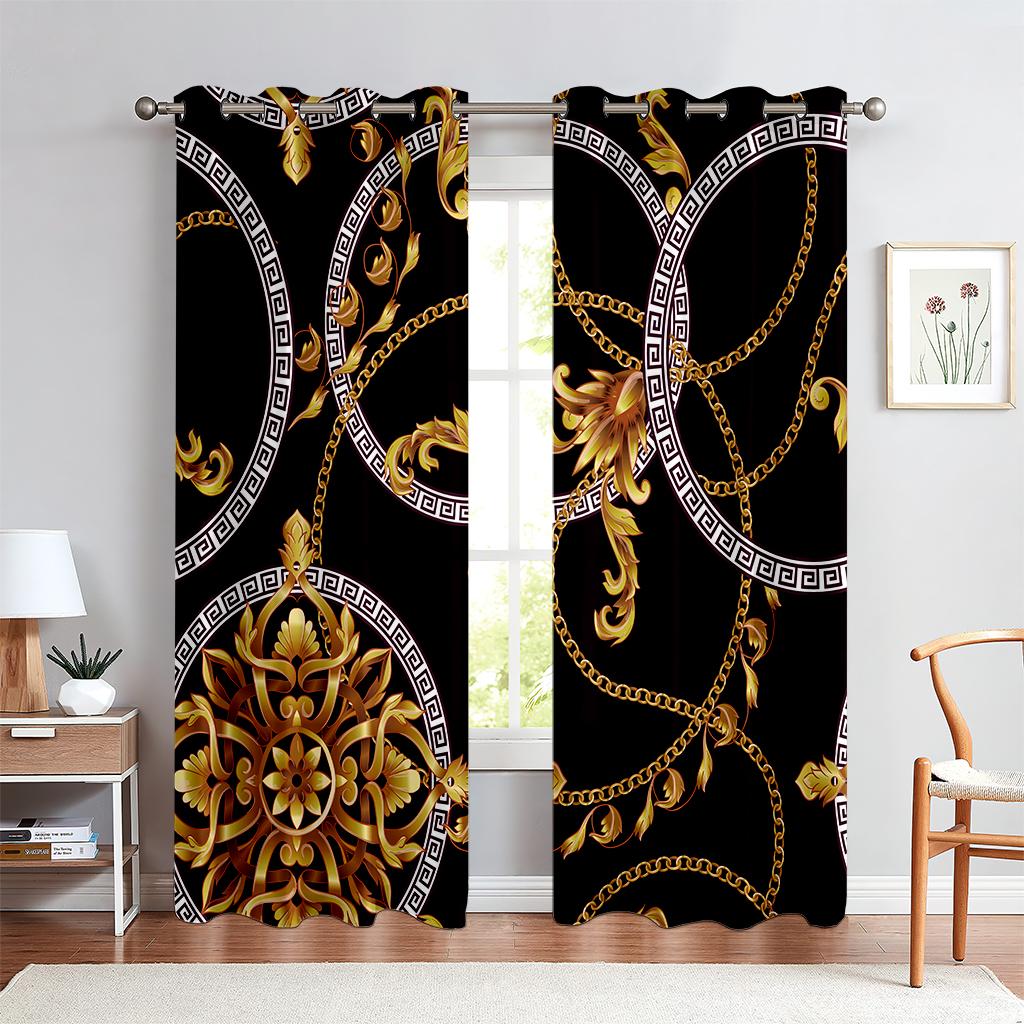 Полиэстер Затемняющие Занавески Окна Для Гостиной, Спальни, Домашнего Декора, Дешевые, Современный Роскошный Бренд, Черный и Золотой,