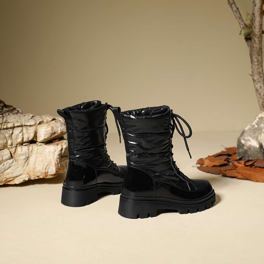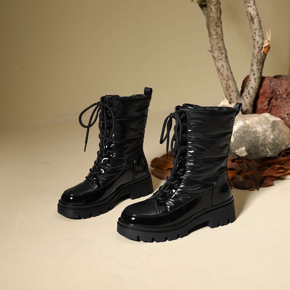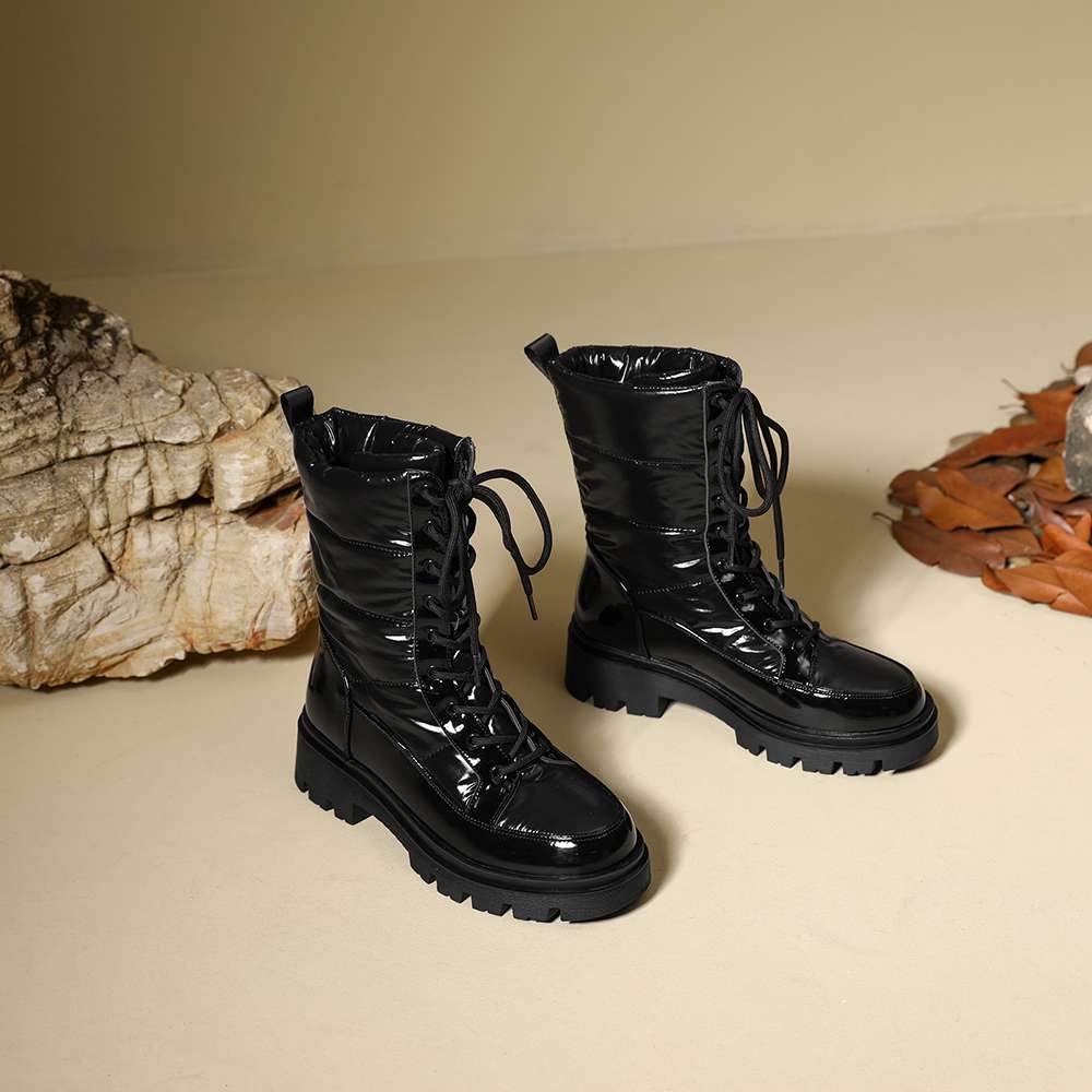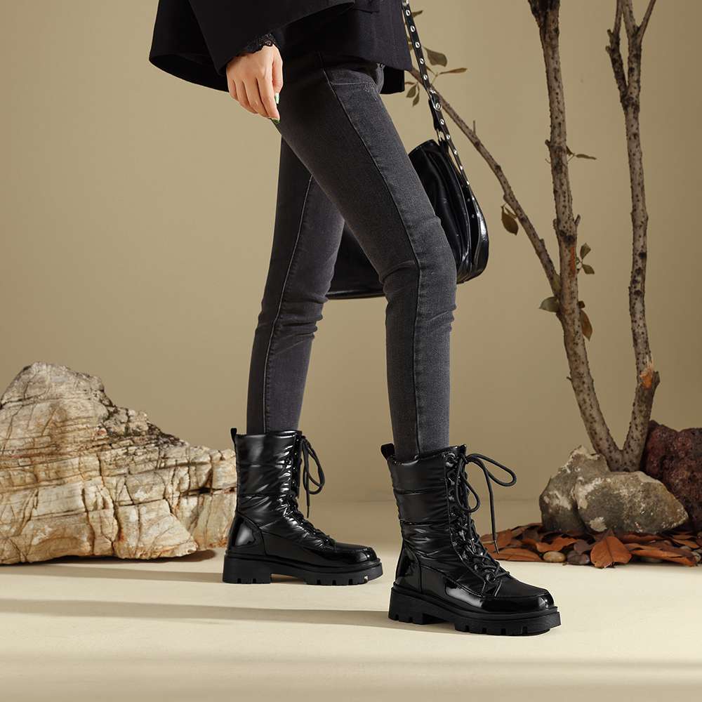 Krazing Pot Ботинки из микрофибры, зимняя обувь, устойчивая к холоду, средний каблук, размер 44, суперразмер, зимние ботинки, шнуровка, круглый носок, сохраняющий тепло, ботильоны