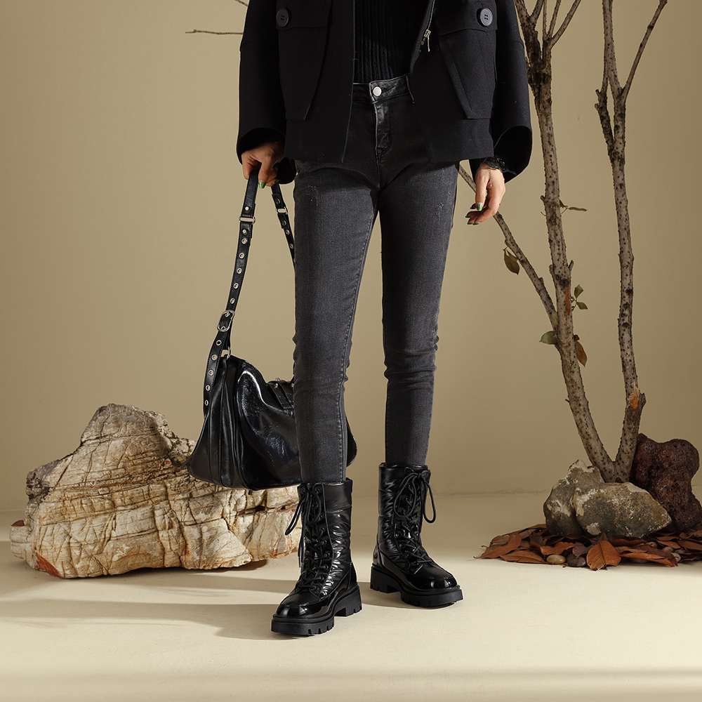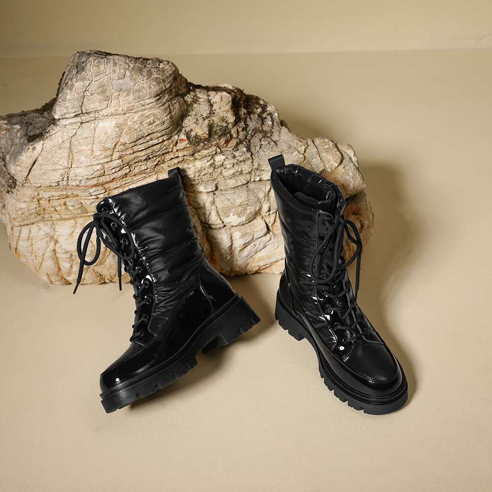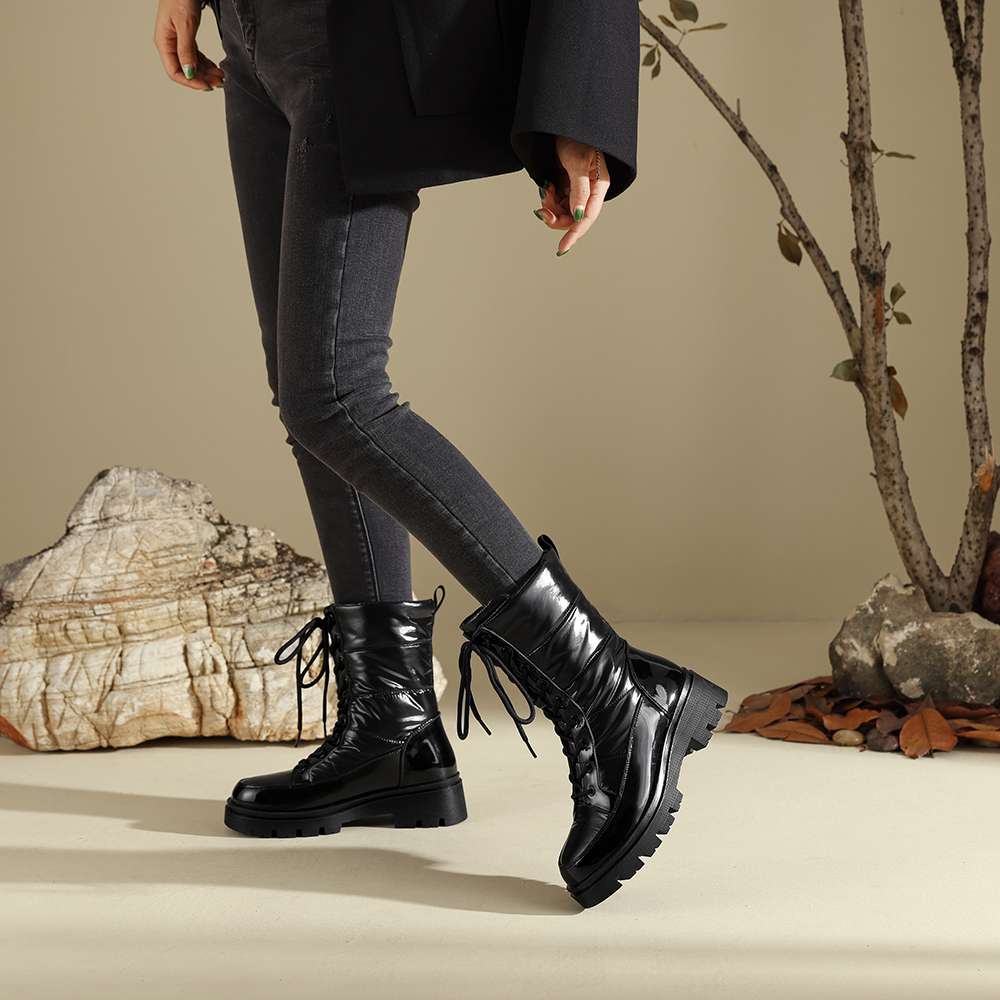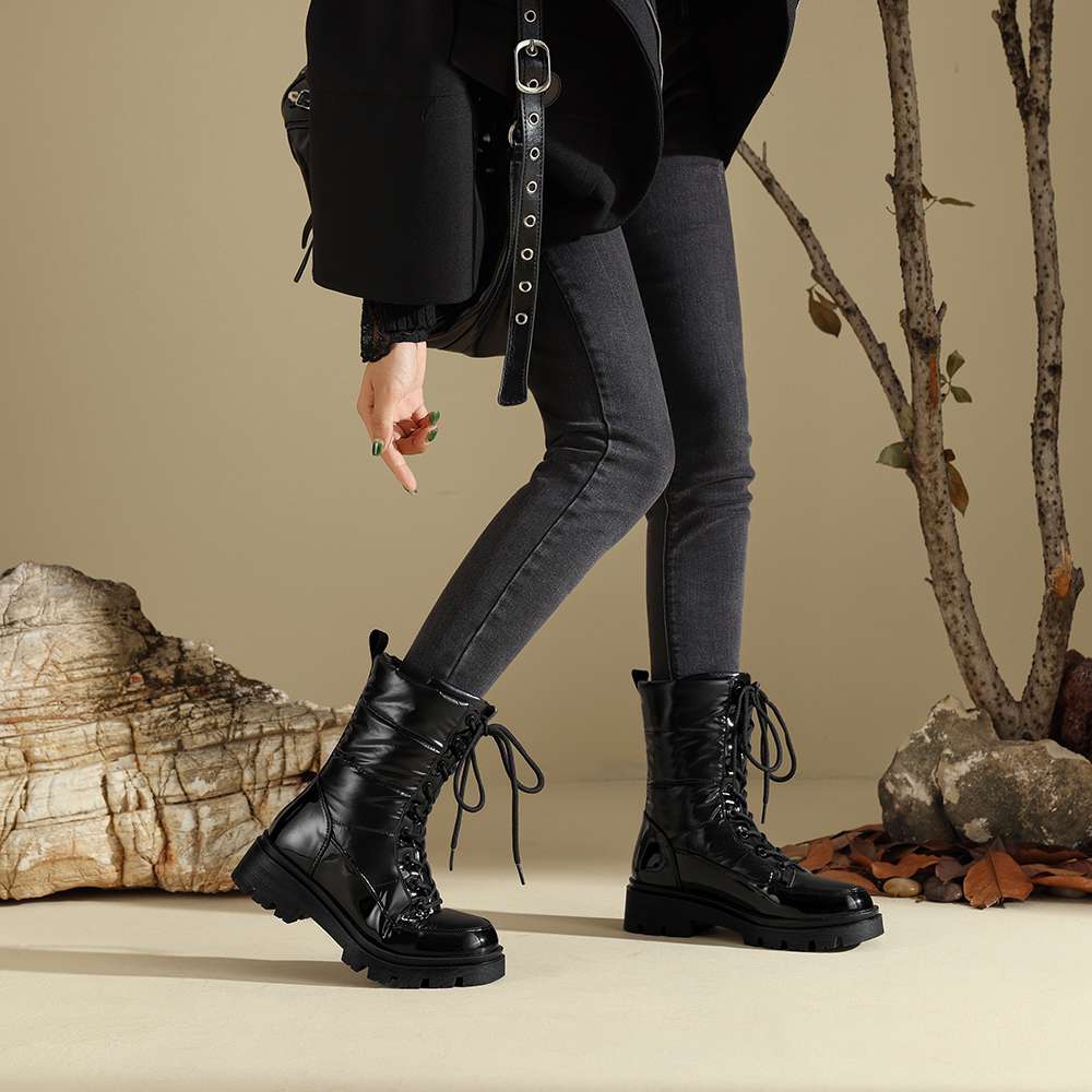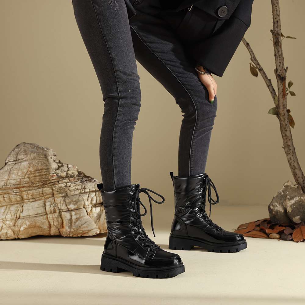 Krazing Pot Ботинки из микрофибры, зимняя обувь, устойчивая к холоду, средний каблук, размер 44, суперразмер, зимние ботинки, шнуровка, круглый носок, сохраняющий тепло, ботильоны
