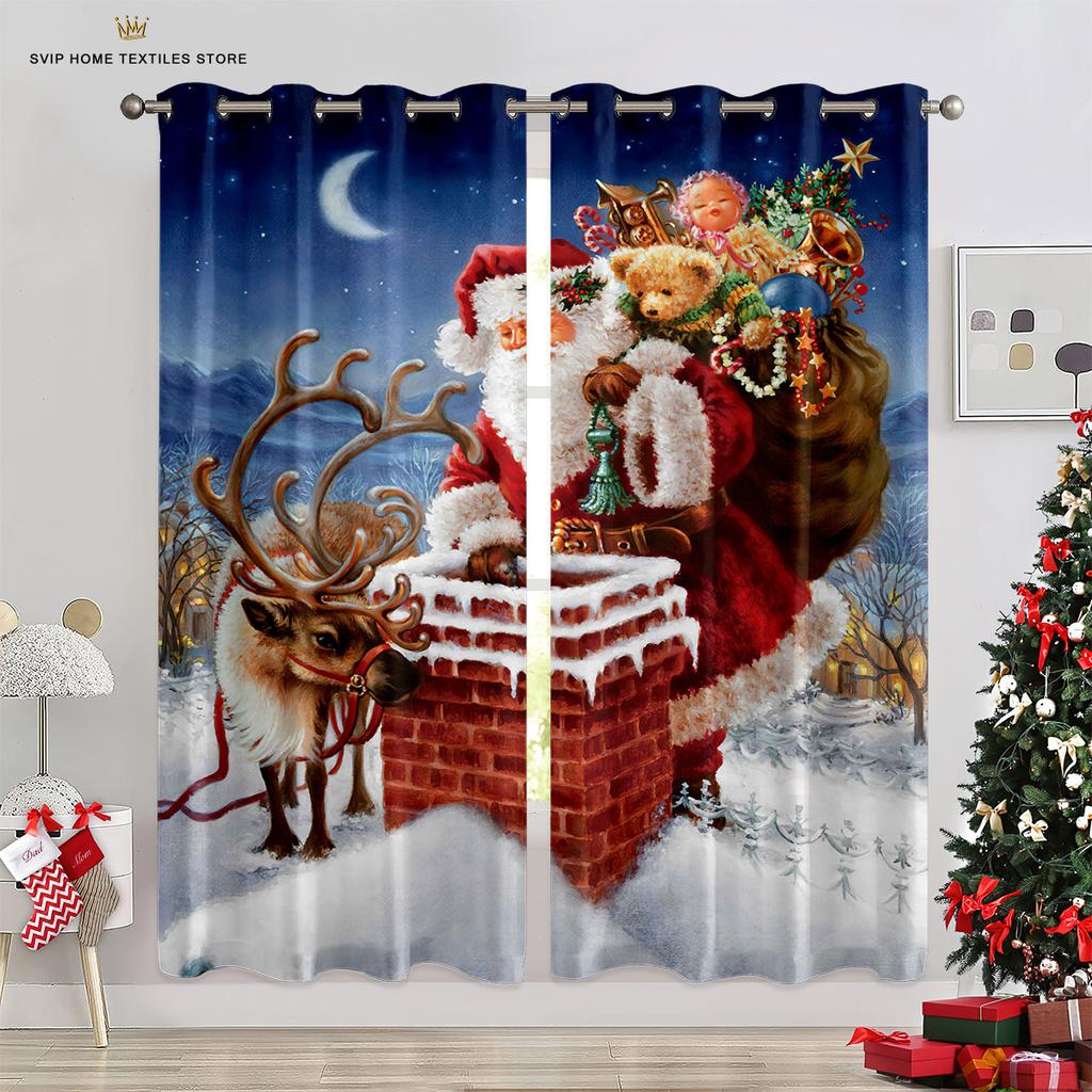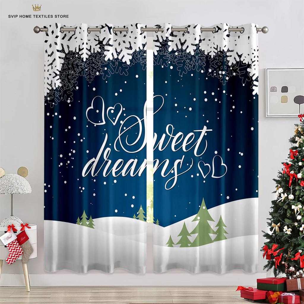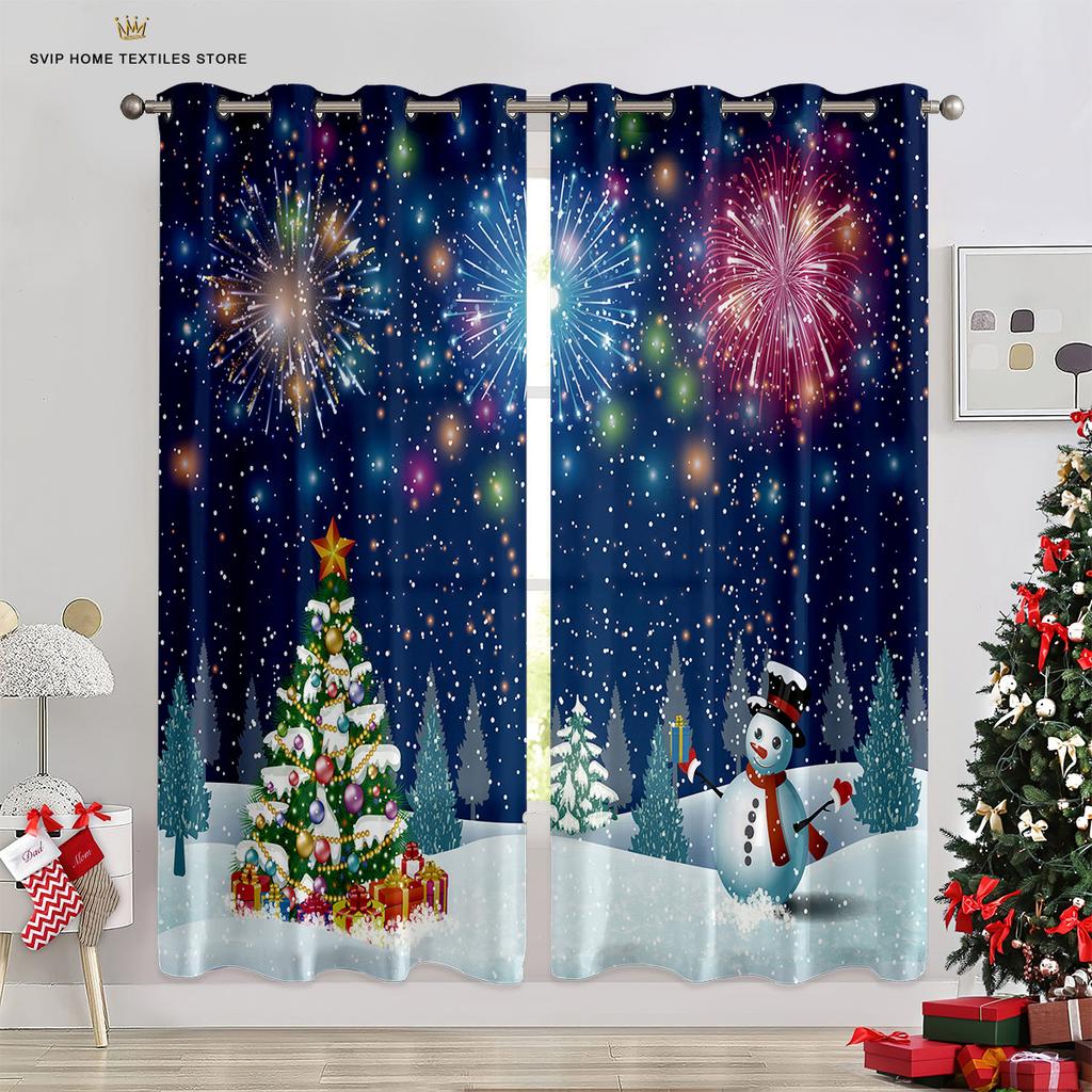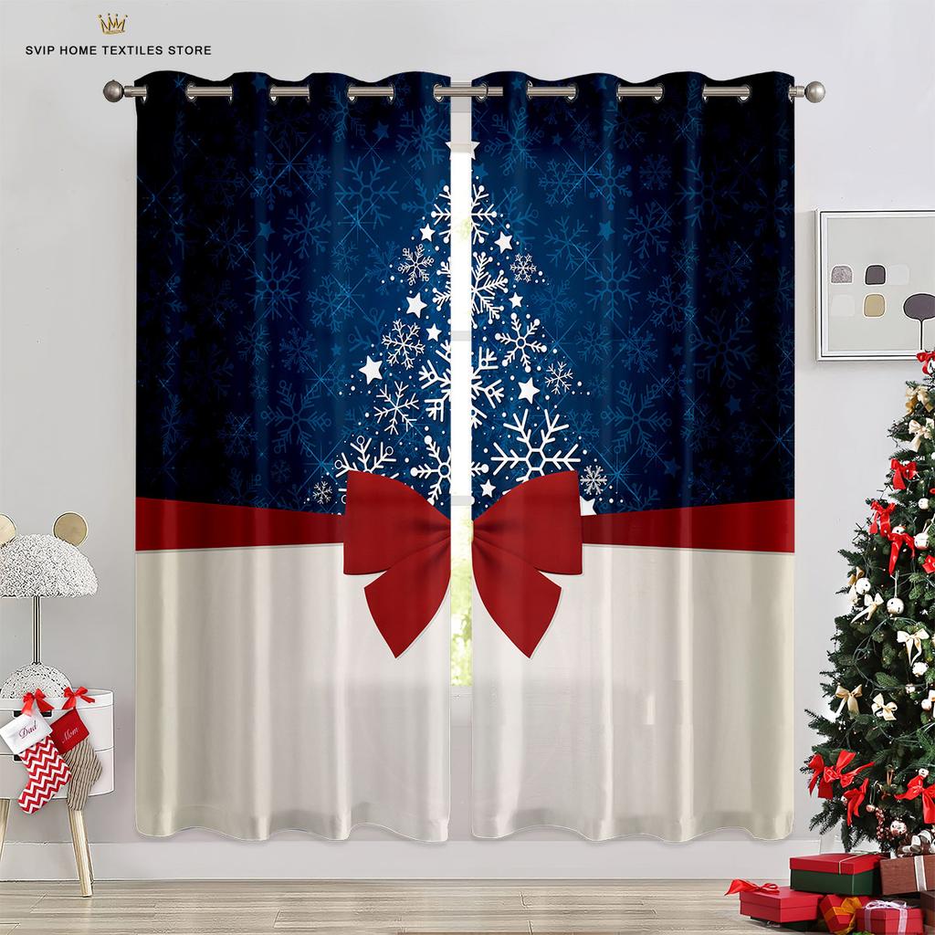 Занавески для рождественской елки с синим звездным небом, красные занавески с бантом, 2 панели, гостиная, спальня, декор детской комнаты, домашний декор