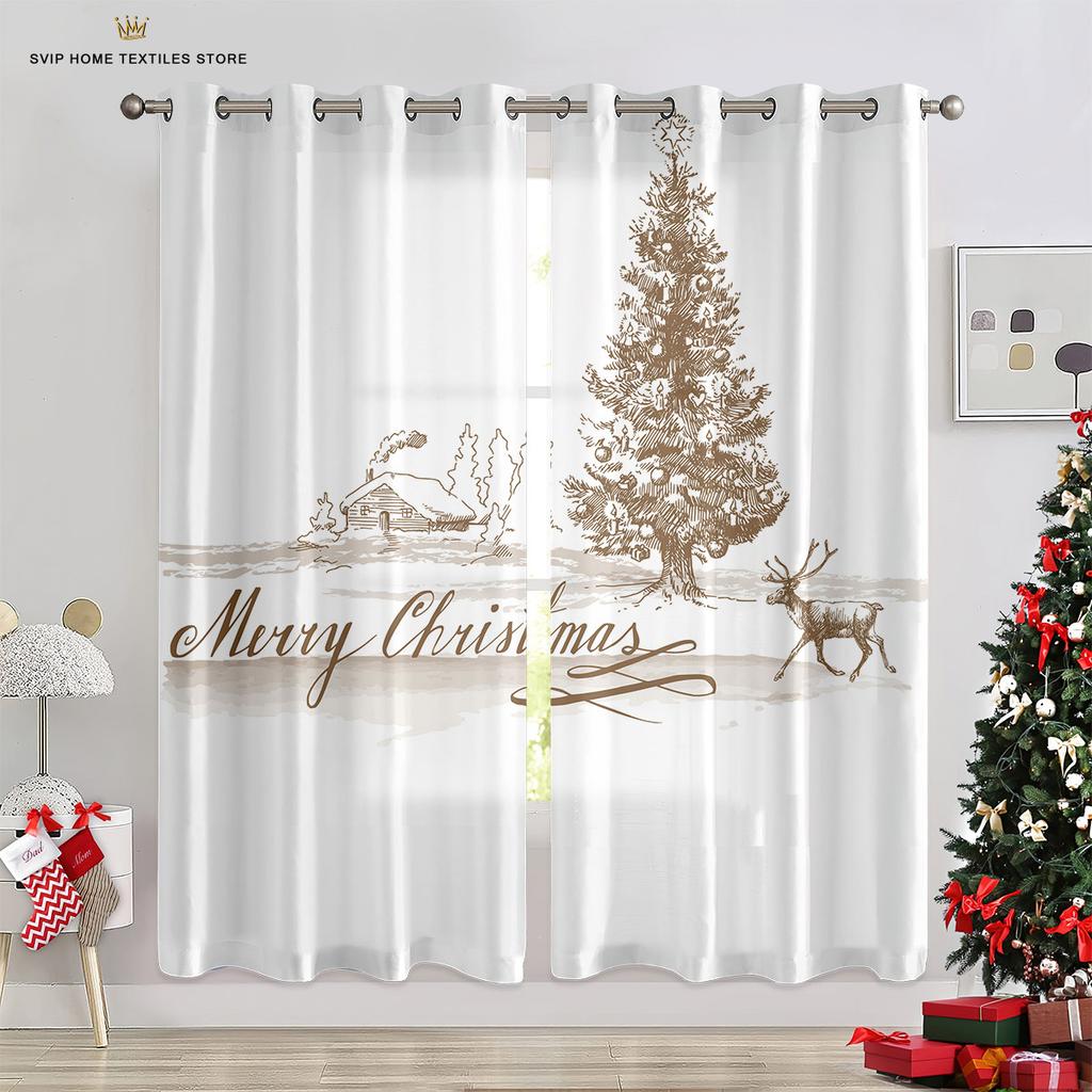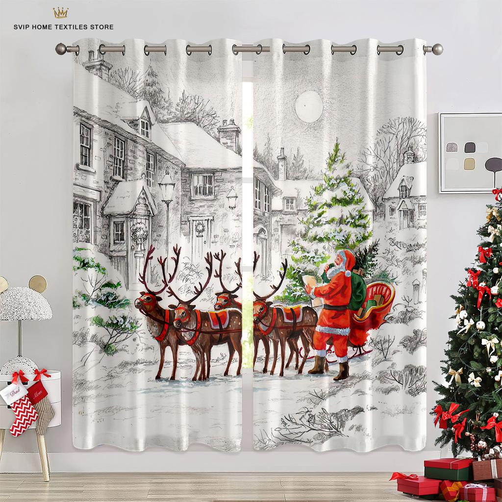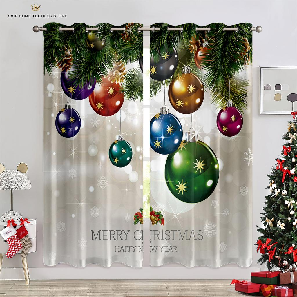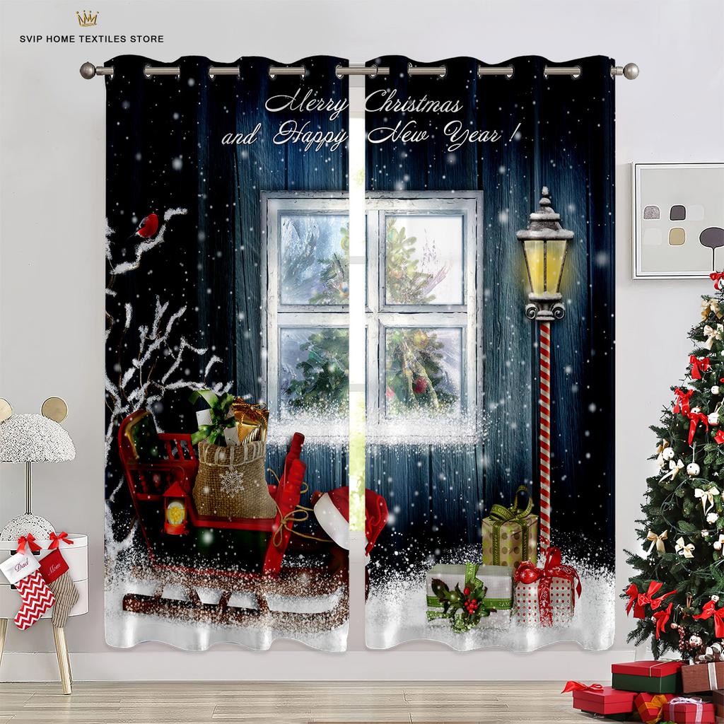 Занавески для рождественской елки с синим звездным небом, красные занавески с бантом, 2 панели, гостиная, спальня, декор детской комнаты, домашний декор