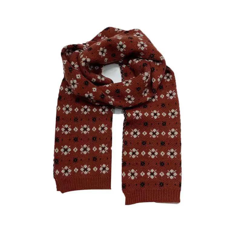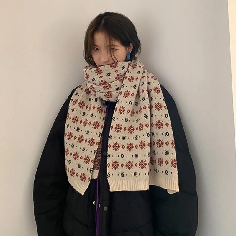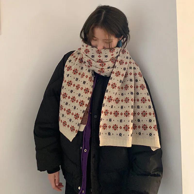 WTEMPO Винтажный цветочный шерстяной шарф для женщин, осень-зима, новый корейский стиль Hyuna, вязаный теплый толстый шарф для защиты шеи