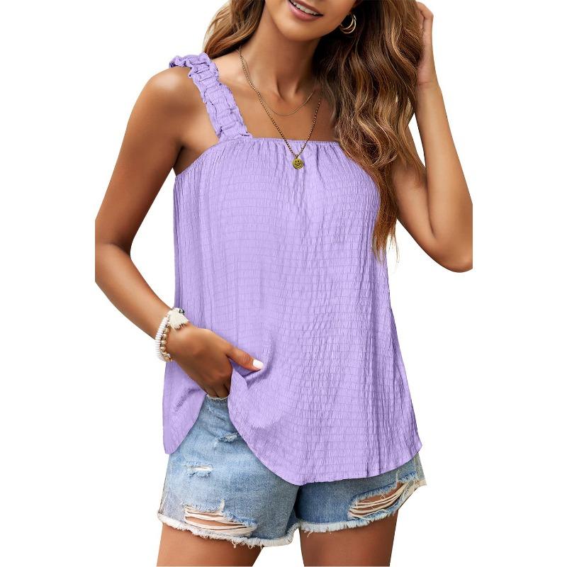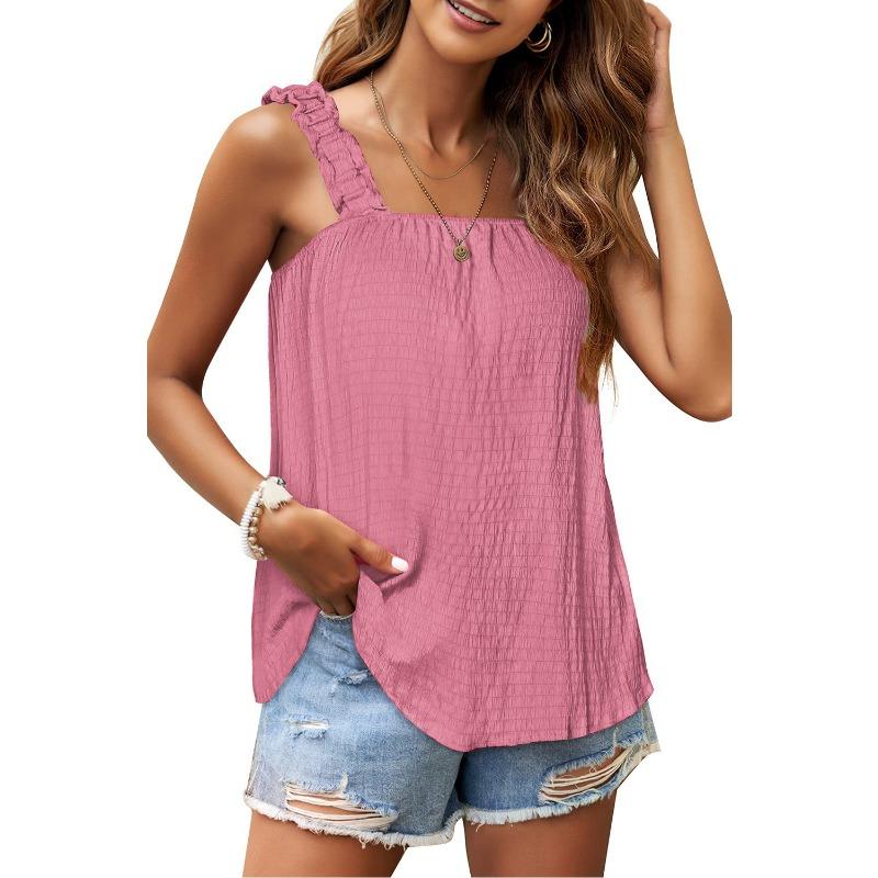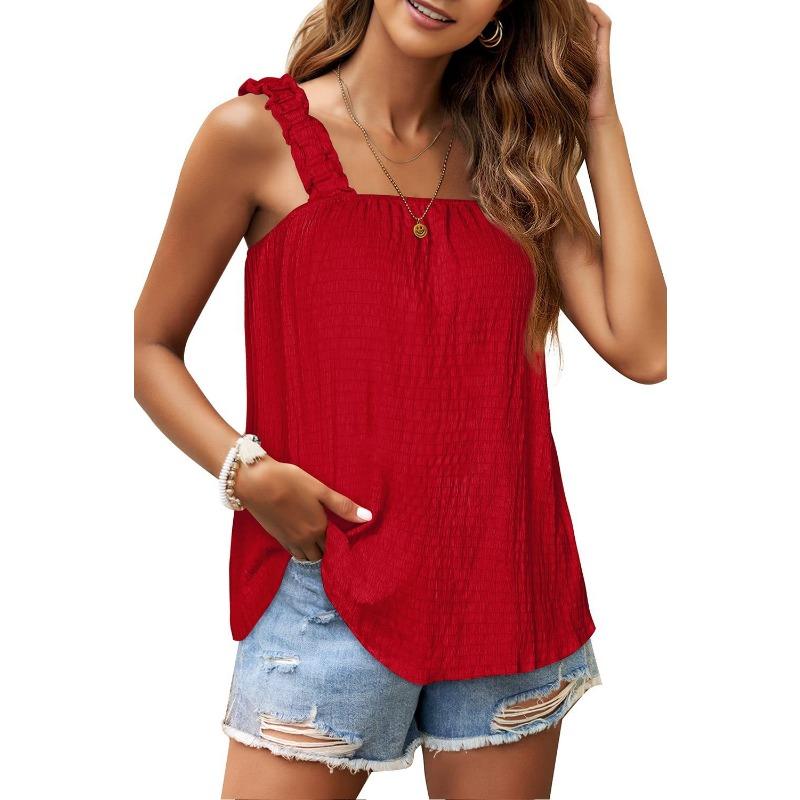 YYFS Женская мода повседневная летняя весна однотонная без рукавов с принтом на подтяжках блузки и рубашки