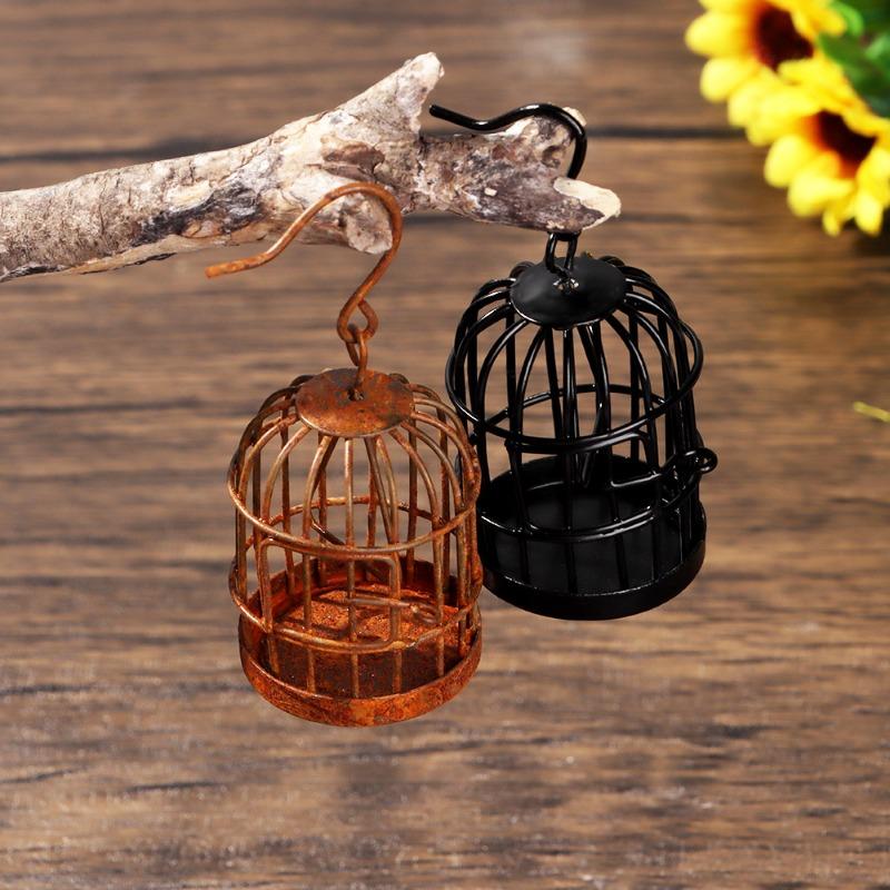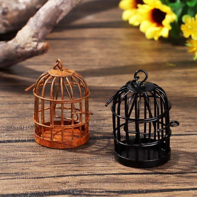 Металлическая клетка для птиц, микропейзаж, мини-кукольный домик, украшение для самостоятельного изготовления, полое подвесное украшение для дома, настольный декор