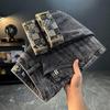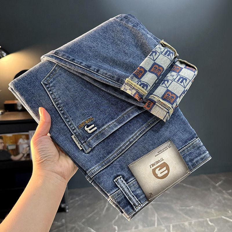 Четыре сезона Мужские модные брендовые вышитые жаккардовые джинсы Мужские корейские версии модные универсальные укороченные брюки
