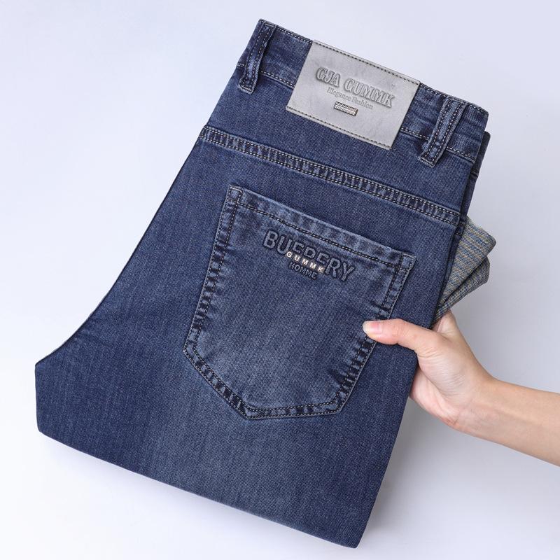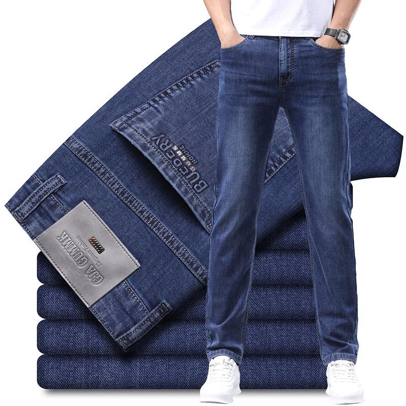 Весна и осень Новые мужские легкие джинсы класса люкс, повседневные мужские брюки, высококачественные свободные прямые длинные брюки