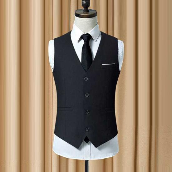 Универсальный костюмный жилет: Украсьте свой официальный наряд этим изысканным жилетом из высококачественного полиэфирного волокна.. V-образный вырез и однобортный фасон обеспечивают облегающий крой, подчеркивающий элегантность и модный стиль.