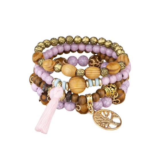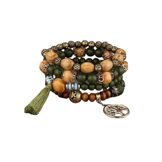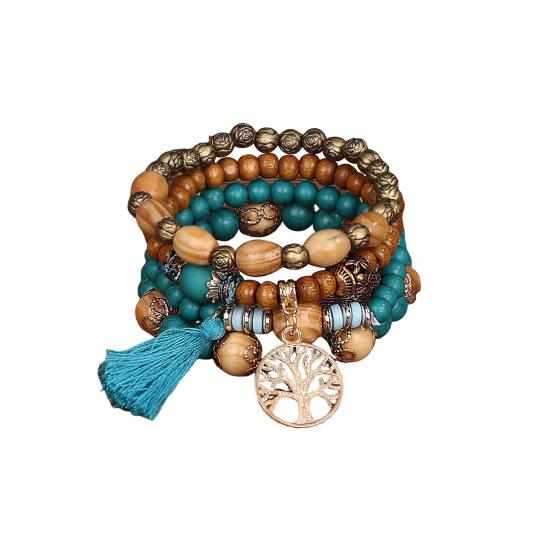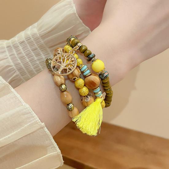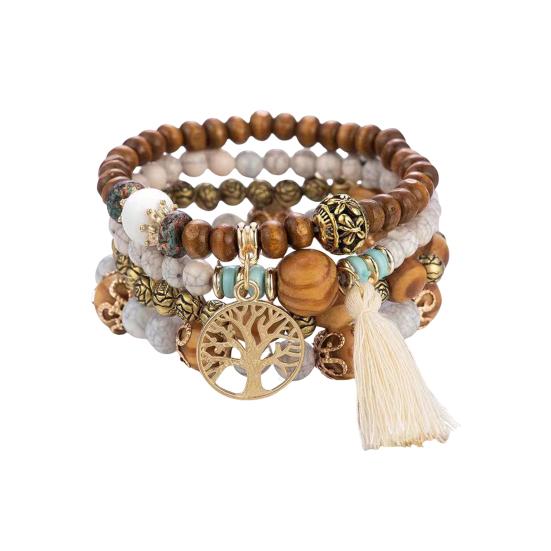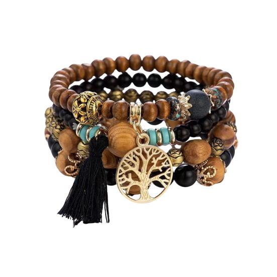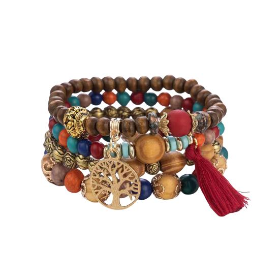 Универсальный стиль: Легко улучшите свой образ с этим набором из 4 эластичных браслетов в стиле бохо с разноцветными деревянными бусинами и кисточками.. Простой, но элегантный дизайн дополнит любую прическу и наряд, что делает его идеальным для того, чтобы поделиться им с семьей, друзьями или любимым человеком.