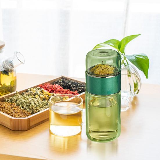 Прохладный на ощупь и герметичный: Двойное боросиликатное стекло обеспечивает прохладу снаружи, а сетчатый фильтр из нержавеющей стали предотвращает смешивание чайных листьев.. Герметичная конструкция с уплотнительным кольцом для защиты от проливания, идеальна для любителей чая, которые часто путешествуют.