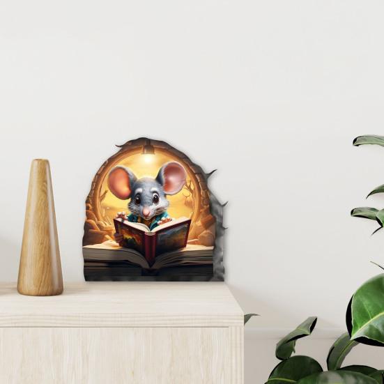 Творческая Атмосфера: Преобразите свое пространство с помощью этой очаровательной настенной наклейки с изображением мультяшной мыши, на которой изображена мышь, читающая книгу или выглядывающая из норки. Она создаст в вашем доме творческую и креативную атмосферу.