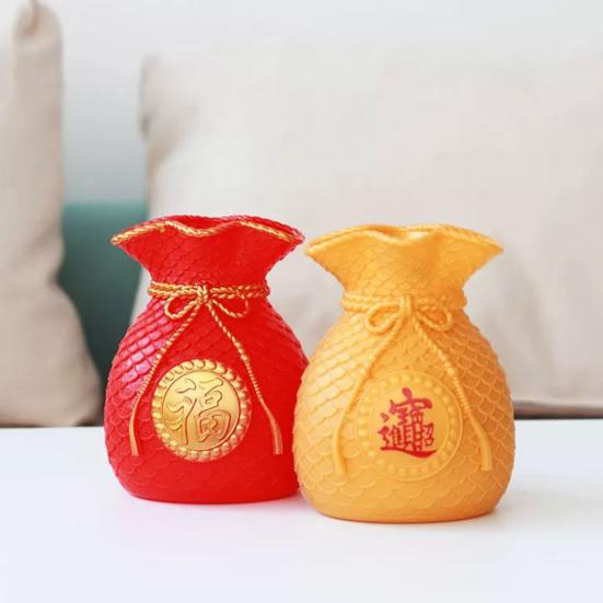 Украсьте свое пространство этим универсальным украшением, которое также можно использовать как вазу для прекрасных цветов.. Сочетание красного и золотого цветов создает подлинную праздничную атмосферу, идеально подходящую для украшения в честь китайского Нового года.. Дизайн счастливого мешочка символизирует удачу и процветание, что делает его идеальным дополнением к вашим праздникам..