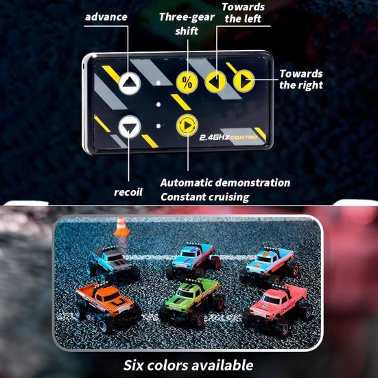 Прочная конструкция из сплава: Эта мини-машинка с дистанционным управлением, изготовленная с использованием прочной рамы из цинкового сплава и стильных наклеек, сочетает в себе прочность и эстетичность, что гарантирует ей способность выдерживать серьезные испытания.