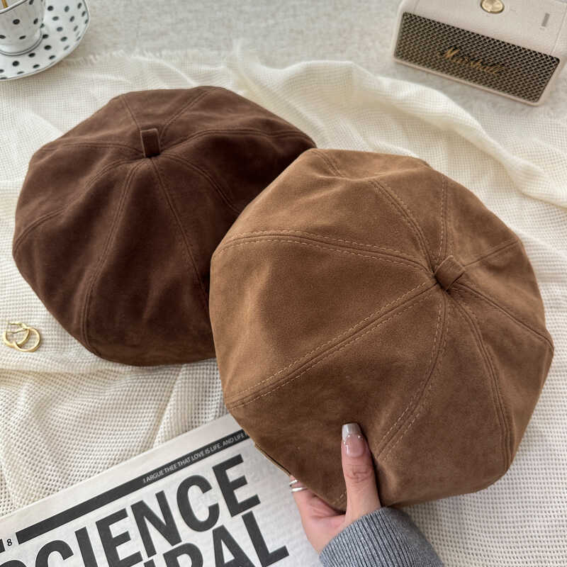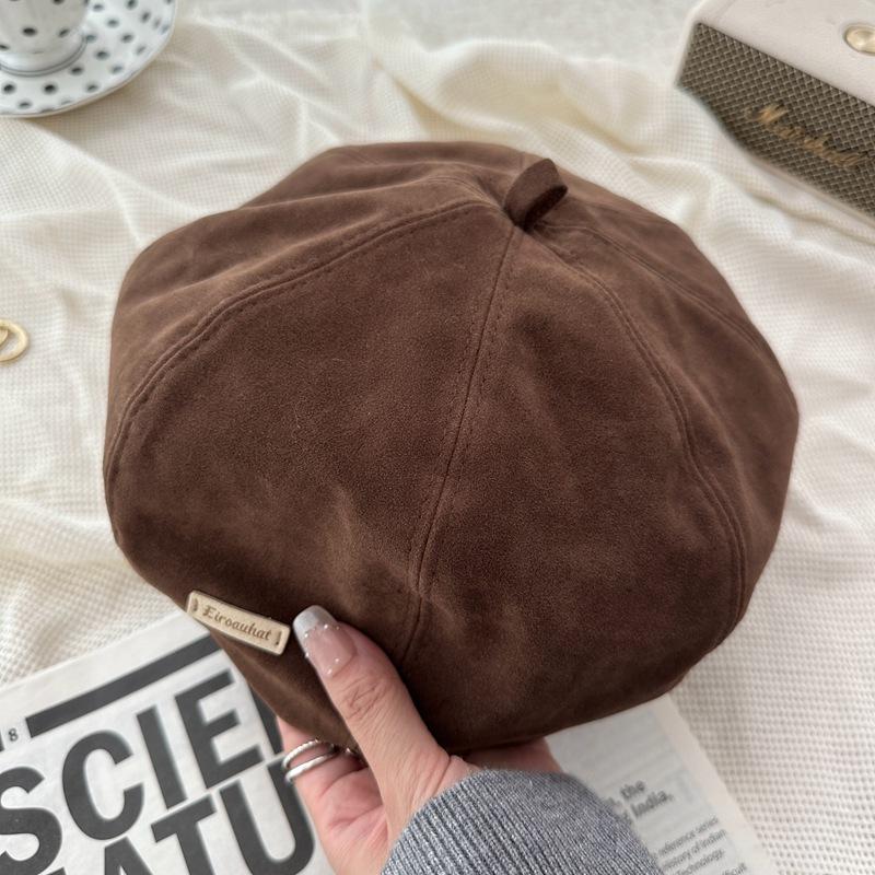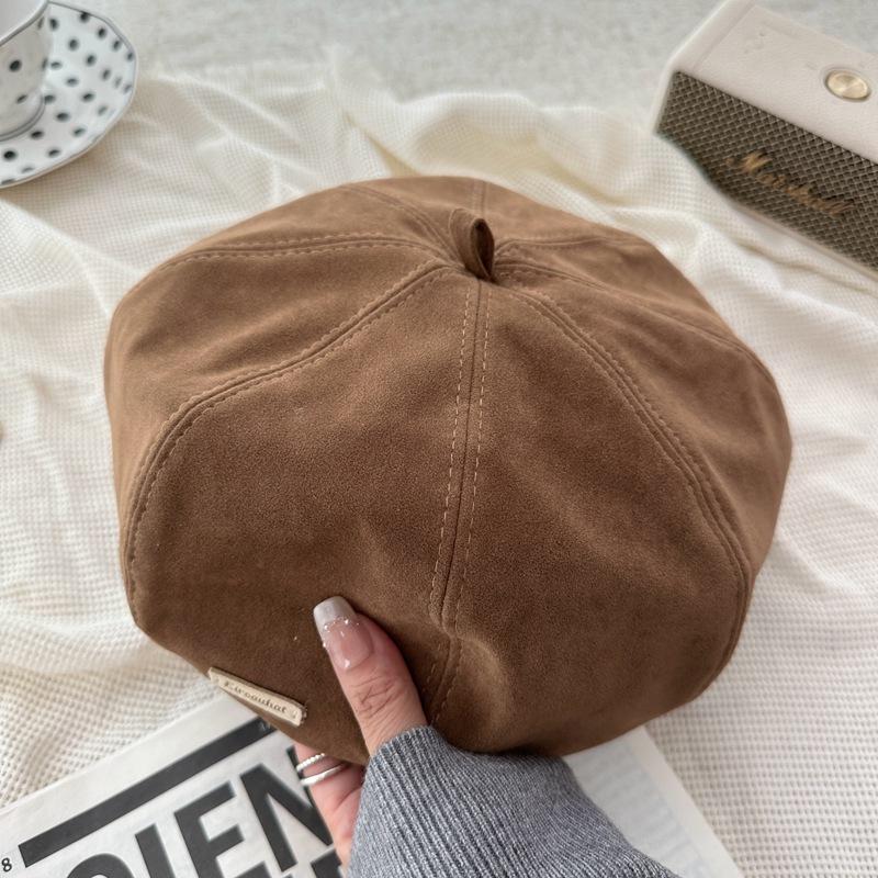 Женская шляпа 2024 года, новый берет, осень-зима, ретро-шляпа художника, маленькая коричневая восьмиугольная шляпа
