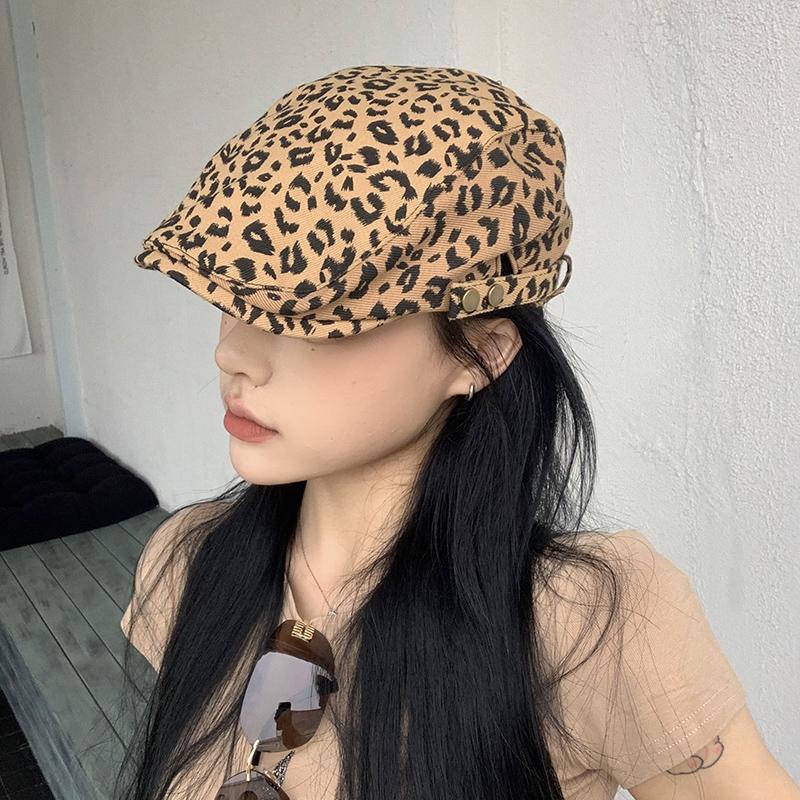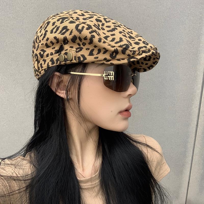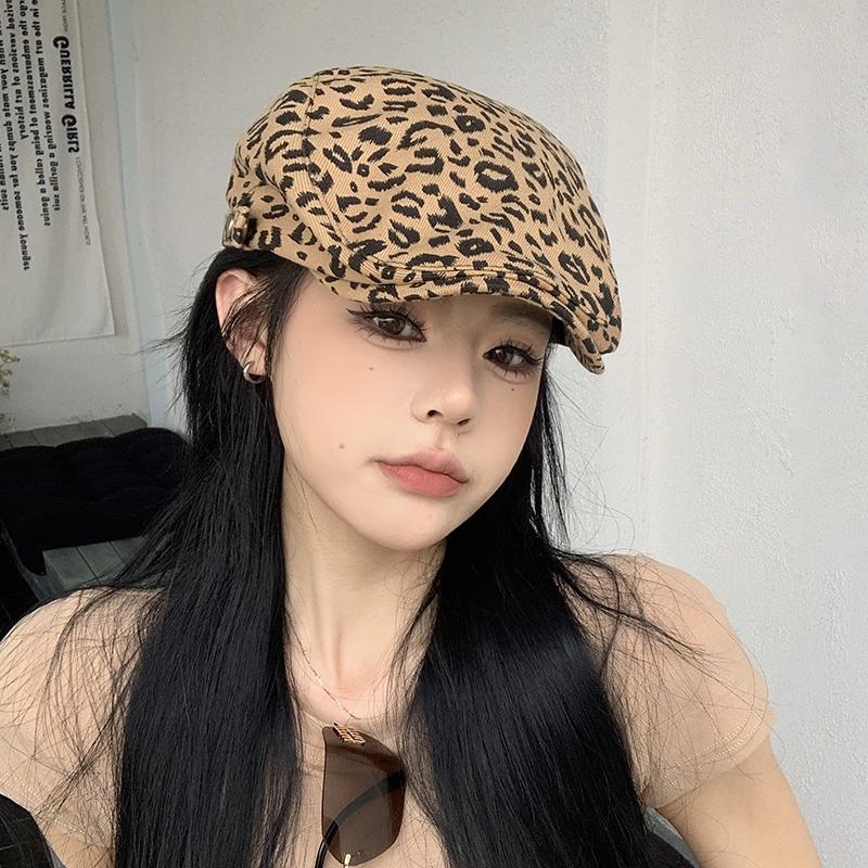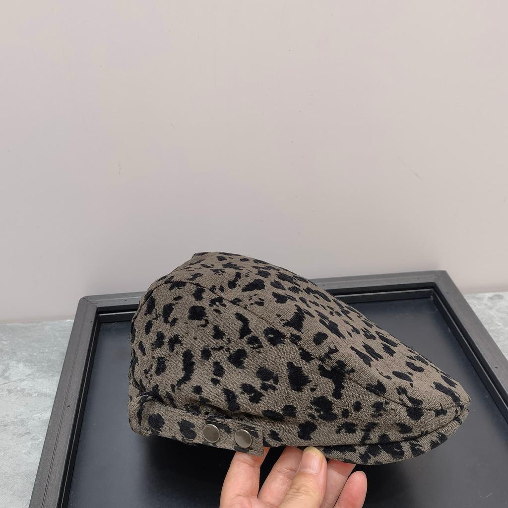 Леопардовый принт шляпа вперед женская 2024 новые модели весна и осень кепка ретро берет иностранный стиль красивая шляпа