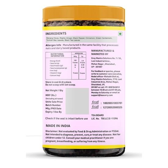Гвоздика Пенанга, могучий имбирь, черный перец, корица, зеленый кардамон, турецкий лавровый лист и листья черного чая.