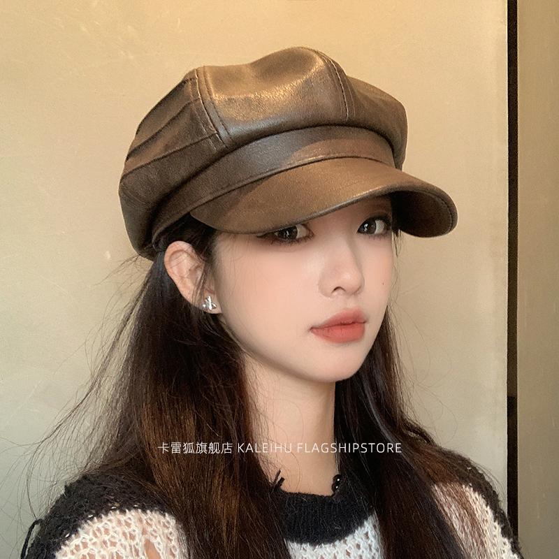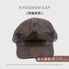 Показать небольшой темпераментный PU кожаный головной убор кепка детская ретро универсальный коричневый берет восьмиугольная шляпа женская осень и зима