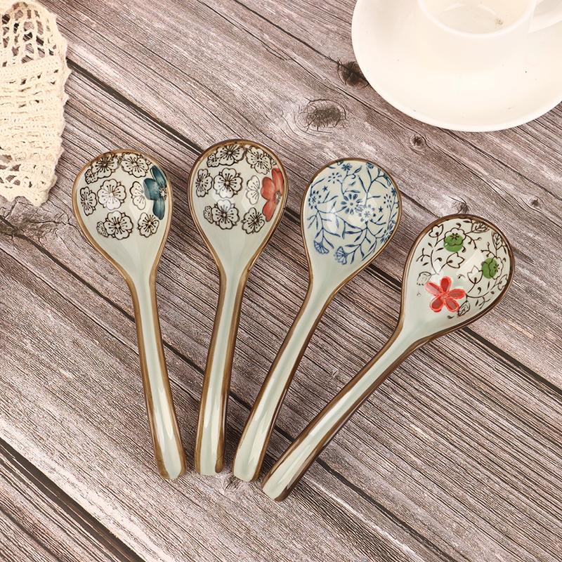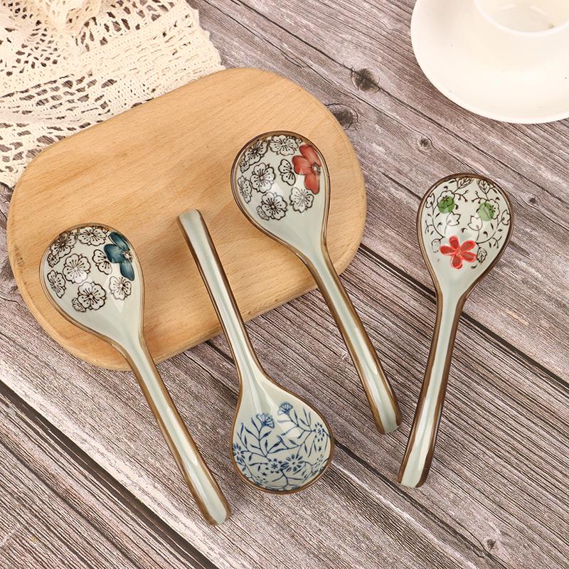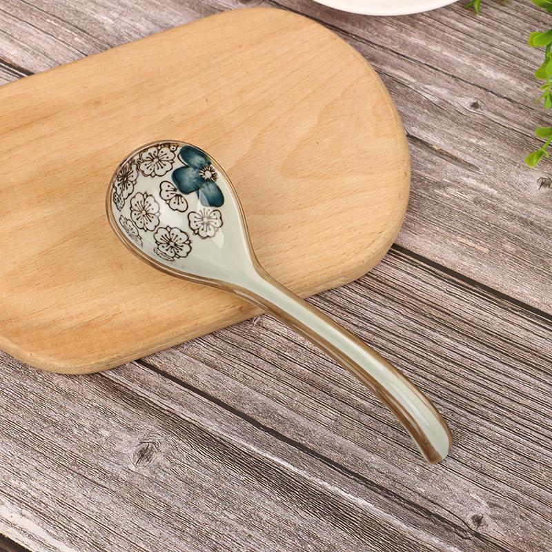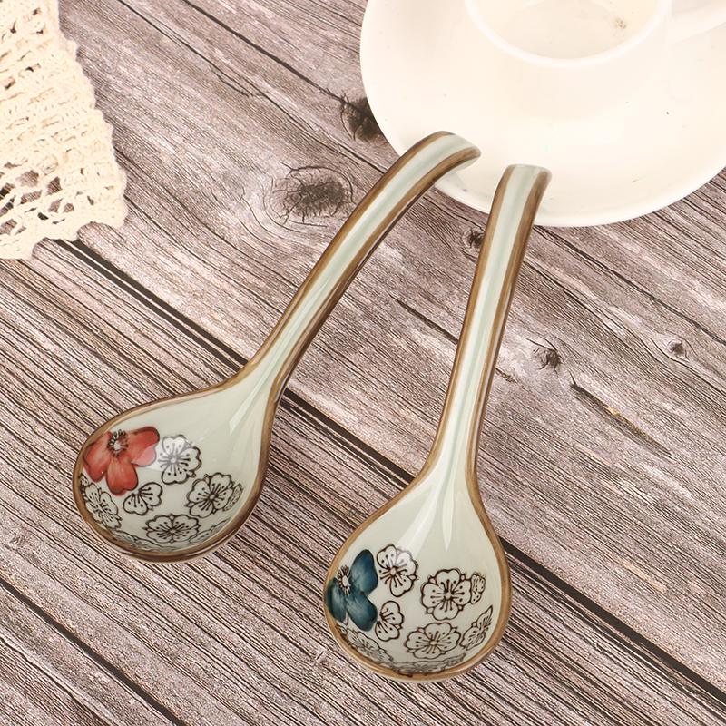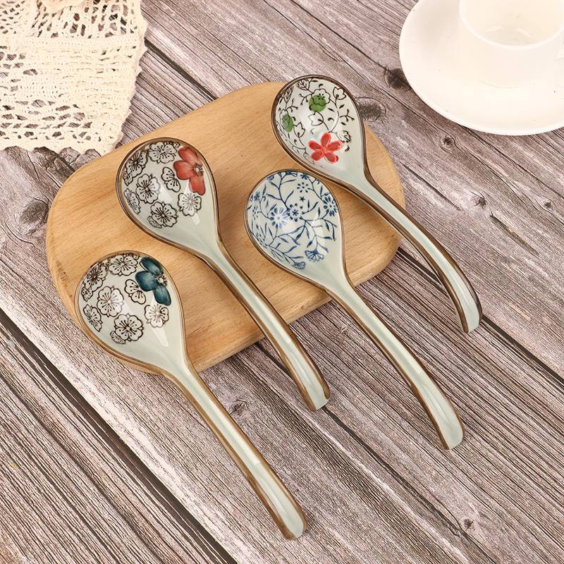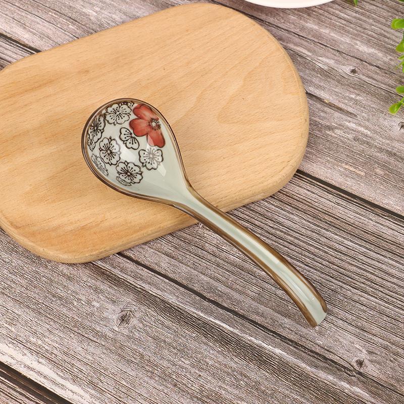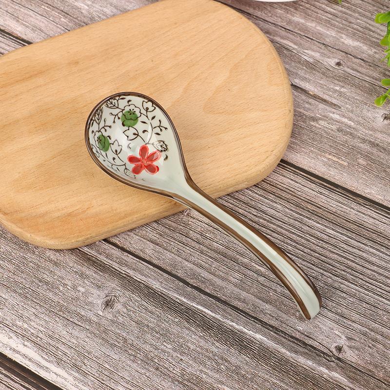 Керамическая посуда в японском стиле, суповая ложка с длинной ручкой, бытовая суповая ложка для отеля, расписные ложки с цветами, столовая посуда