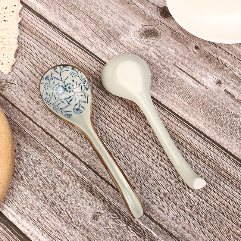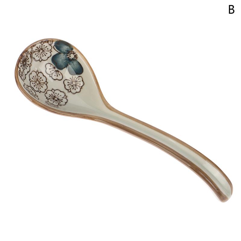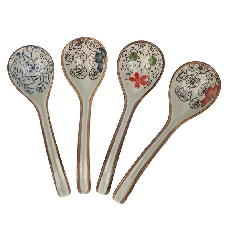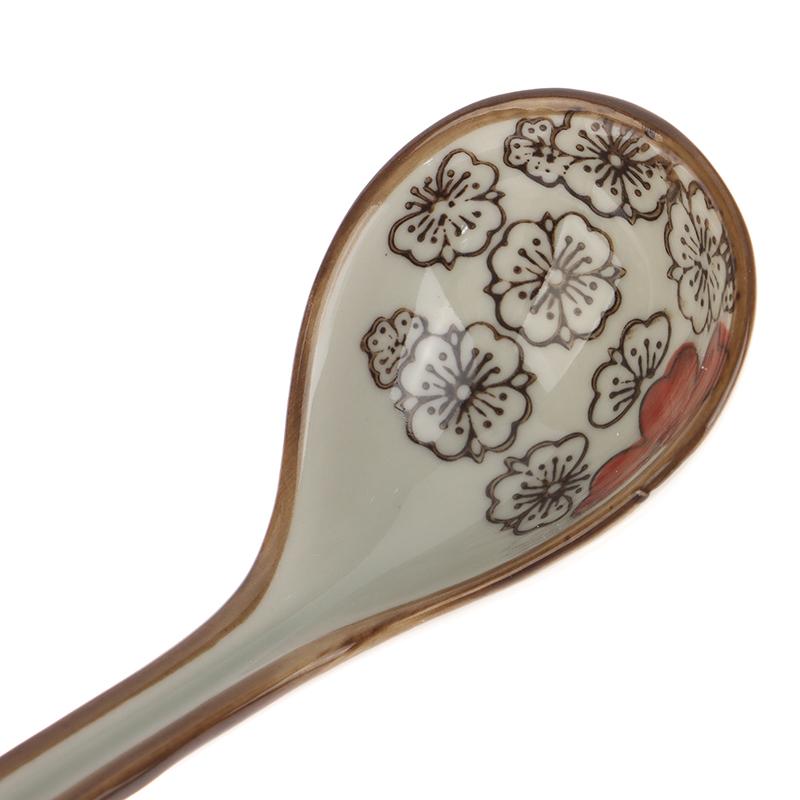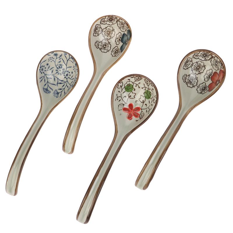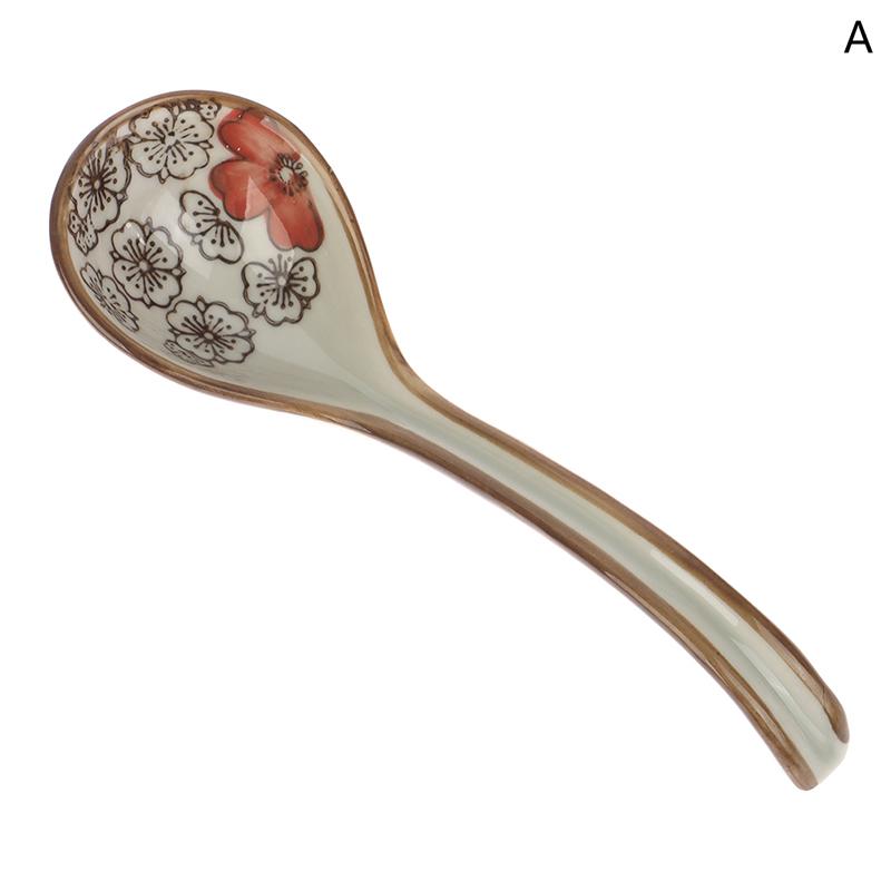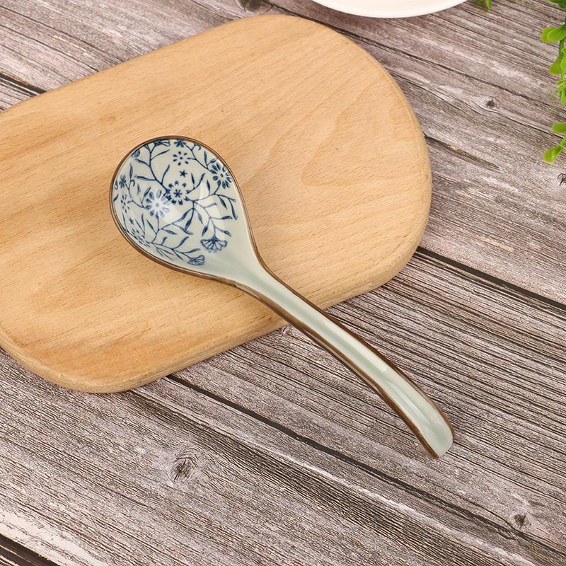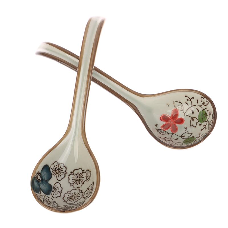 Керамическая посуда в японском стиле, суповая ложка с длинной ручкой, бытовая суповая ложка для отеля, расписные ложки с цветами, столовая посуда