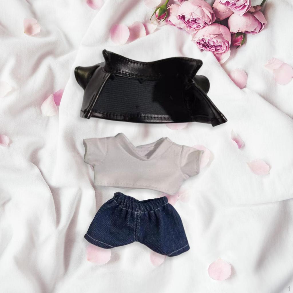 3 шт. кукольная кожаная куртка и футболка брюки, ручная работа одежда аксессуары наряды для 15-17 см