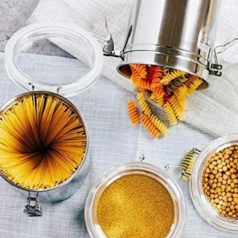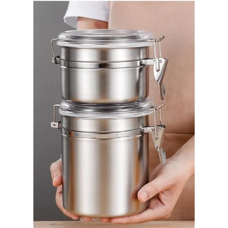 Контейнер для хранения продуктов из нержавеющей стали для сахара, чая, молока, сухого кофе, зерен, с прозрачной крышкой и зажимом