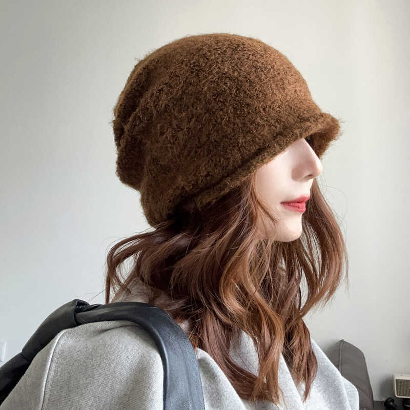 Дизайнерская вязаная круглая шапка для волос, однотонная, женская, осенне-зимняя, баотоу, защитная шапка для ушей, завивка, шерстяная, универсальная — купить товар онлайн с бесплатной доставкой до всему миру!