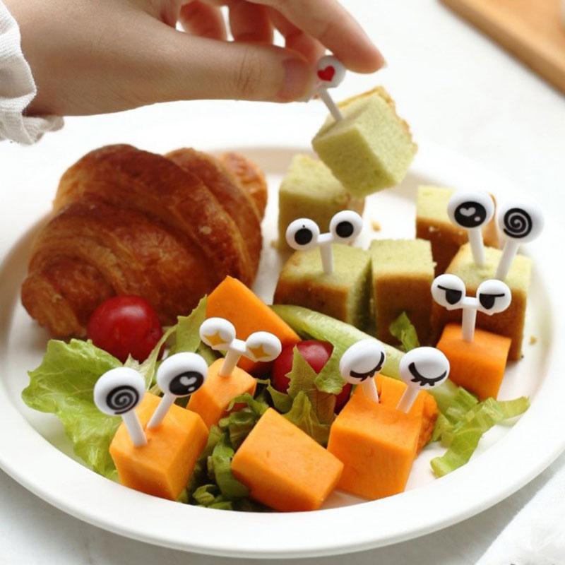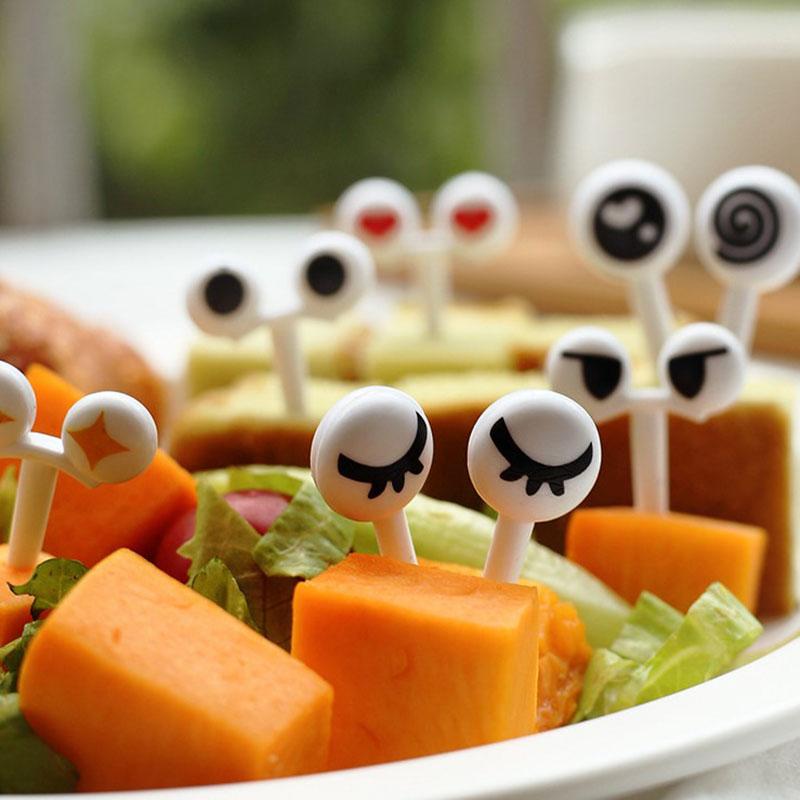 10 шт. Милые пластиковые зубочистки для фруктов с милыми глазами, мультяшные вилки для бенто, декоративные