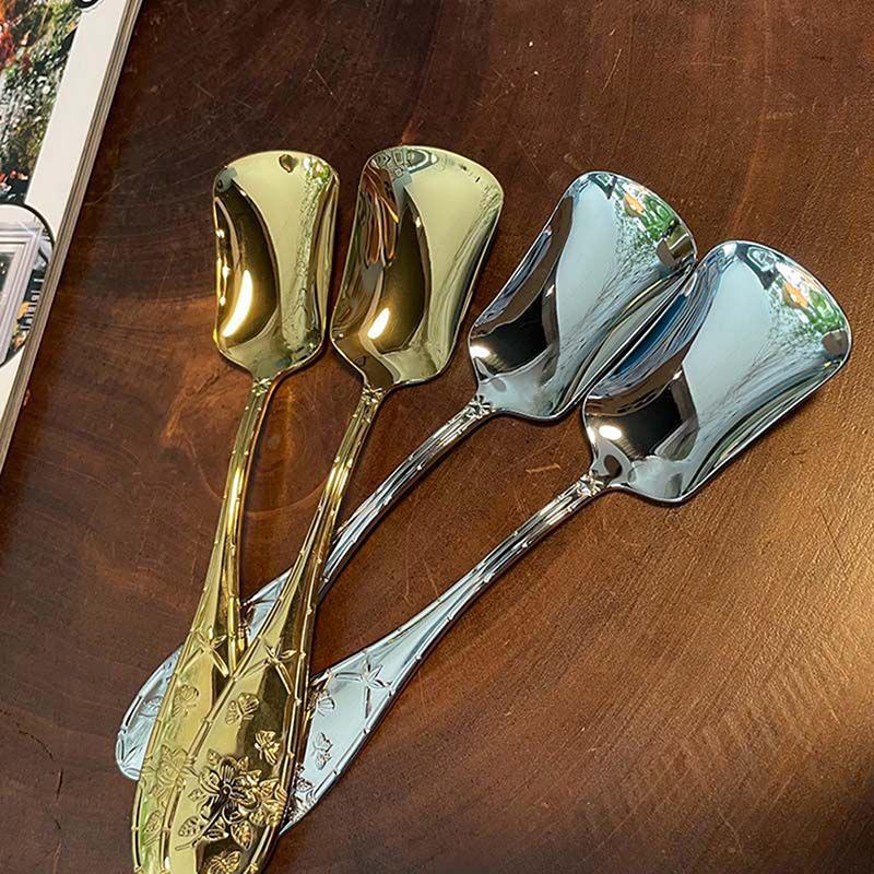 Ложка из нержавеющей стали, сетка, красная, золотистая, для ужина, с длинной ручкой, десертные ложки для перемешивания, кухонные аксессуары, гаджеты